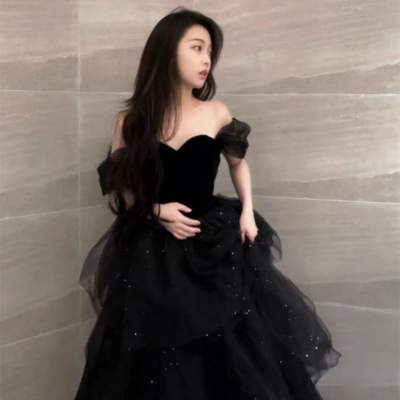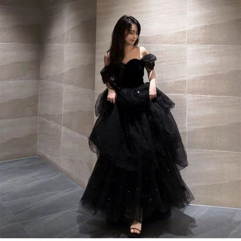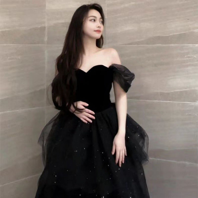 prom dresses Black Evening Dress New Light Luxury Niche High-End off-Shoulder Adult Ceremony Birthday Graduation Princess Dress