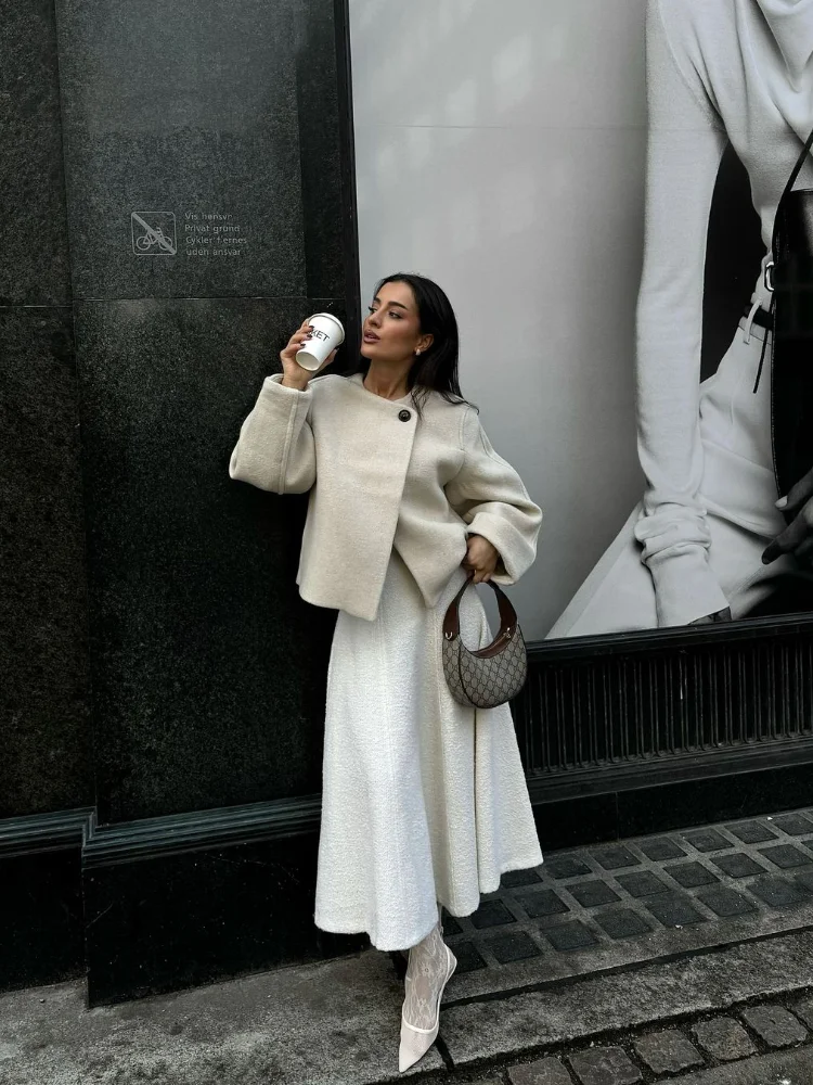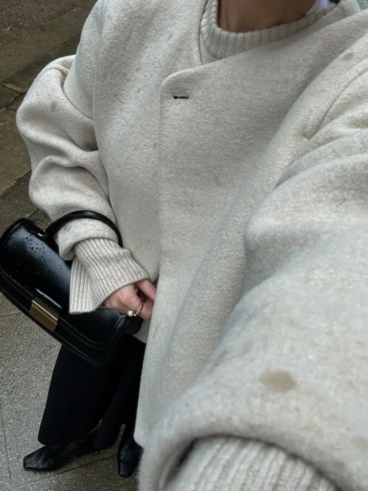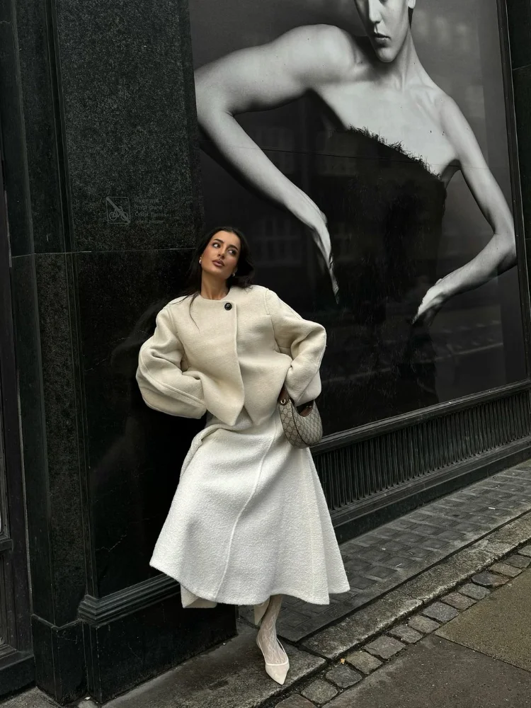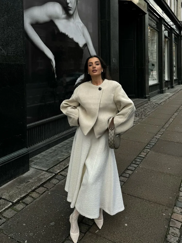 maoxiangshop - Chic Woolen Women's Short Coats O Neck Long Sleeve One Button Coat 2024 Autumn Winter Elegant Female Commute Outerwears