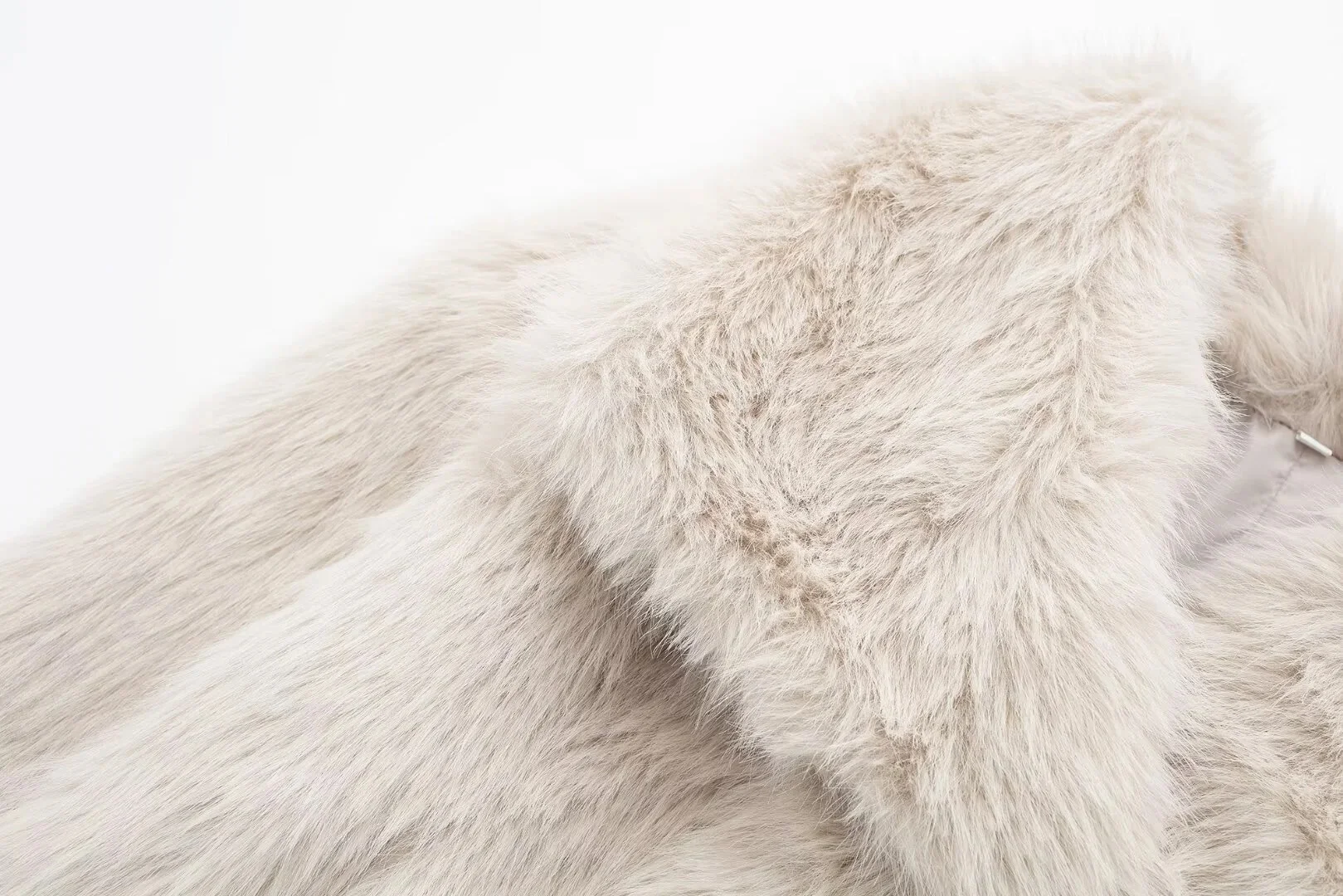 maoxiangshop - Faux Fur Cardigan Coat Women 2024 Winter Luxury Solid Long Sleeve Fashion Short Coats Lady Elegant Warm Thick Jackets Outerwear