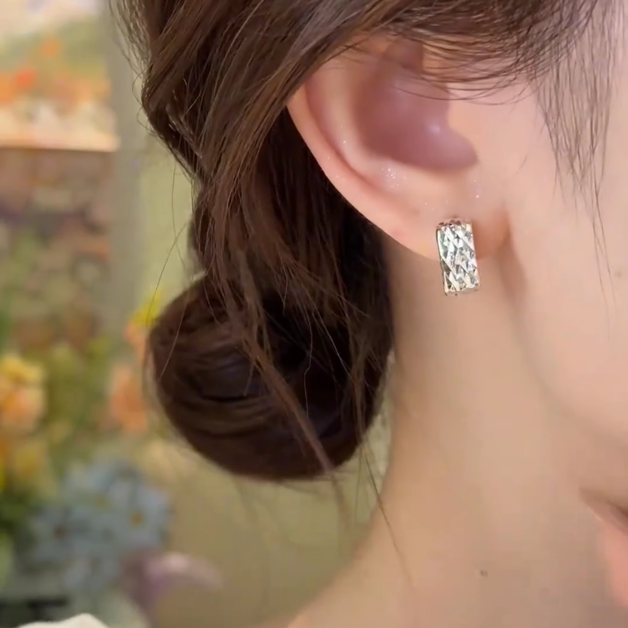 925 Silver Needle Earrings Fashion Versatile Light Luxury Rhombus Square Earrings Earrings Niche Premium Temperament Earrings