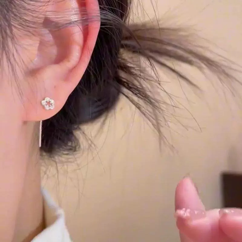 925 silver needle flash diamond flower earrings women's niche design sense micro-inlaid flower earrings temperament sweet and exquisite earrings