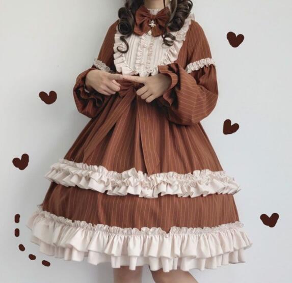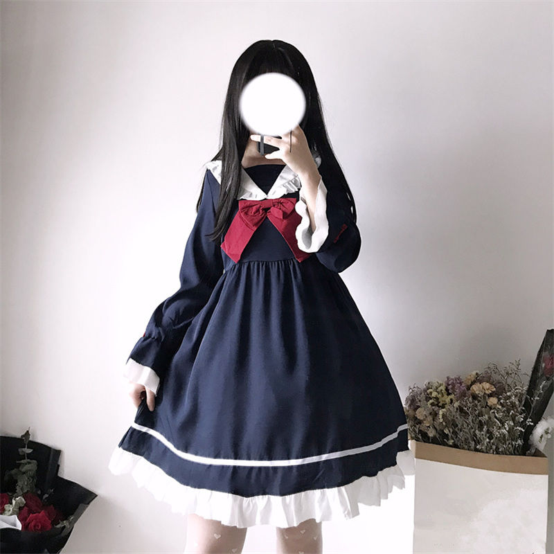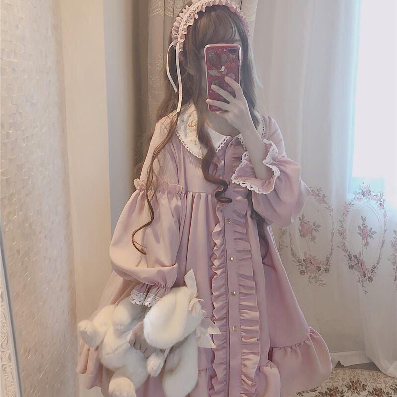 maoxiangshop In Wondeland Cute Women's Lolita OP Dress Flouncing Lace Trim Japanese Harajuku Long Sleeves Doll Dress Fairy Vestidos