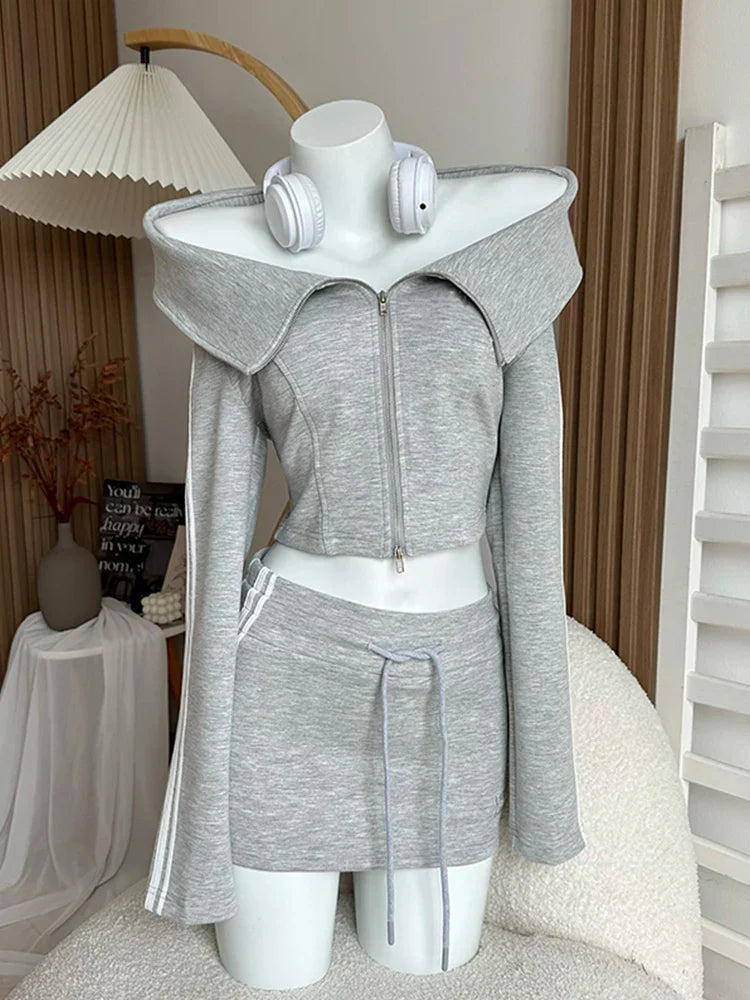 Autumn Winter Gyaru Stripe Outfits 2 Piece Set Fashion Slash Neck Tank Top+Elastic Waist A-Line Skirts Lace Up Suit Y2K Clubwear