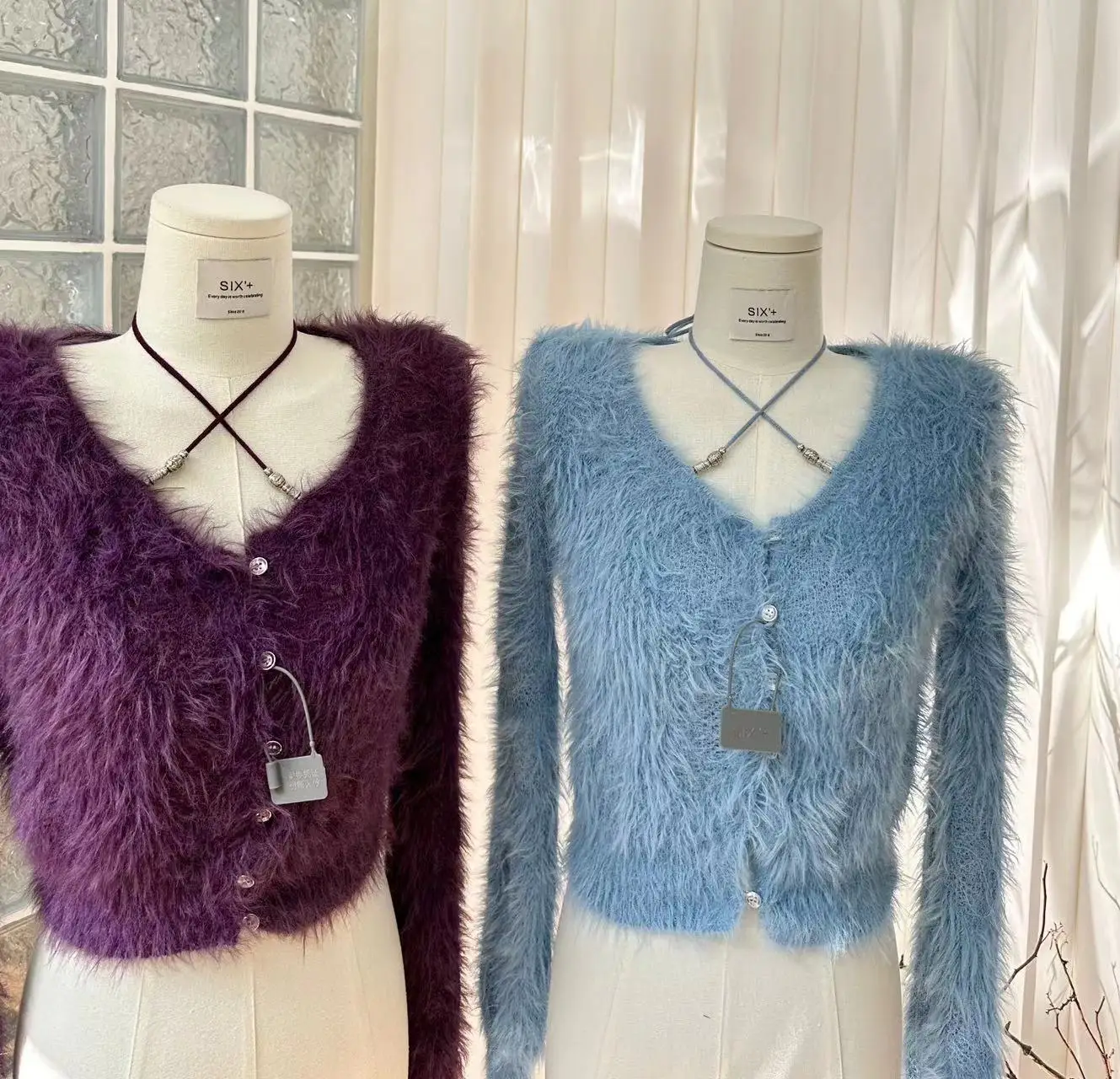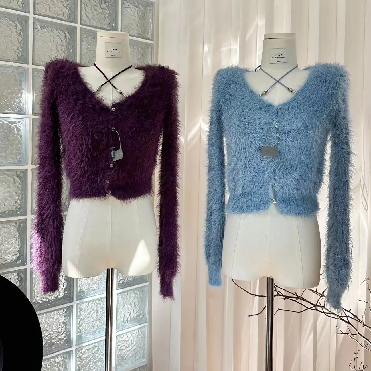 Autumn Winter Woman Korean Fashion Y2k Streetwear Gyaru Cardigan Cropped Sweater Knitwears 2000s Aesthetic Cashmere Sweater Tide