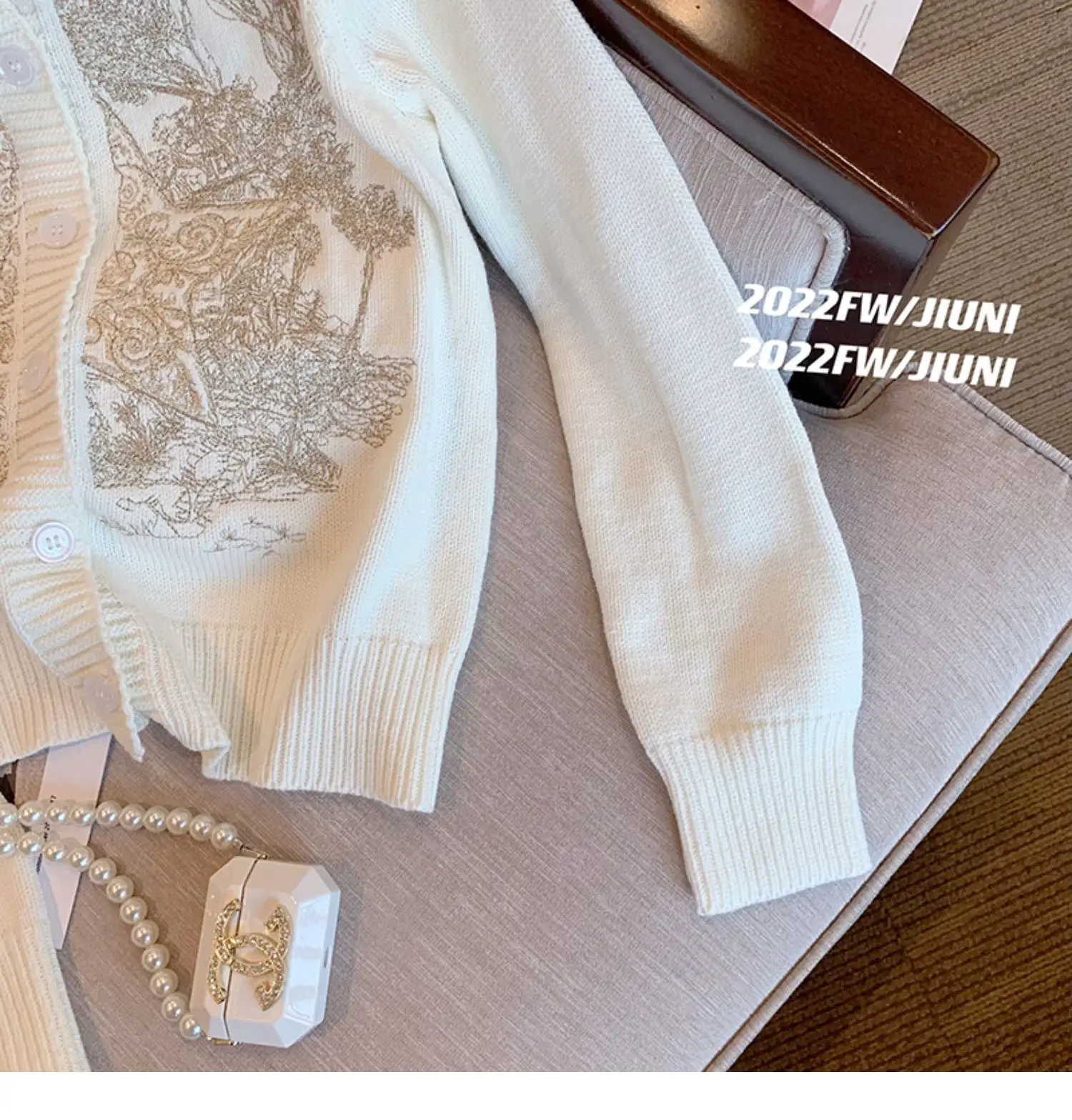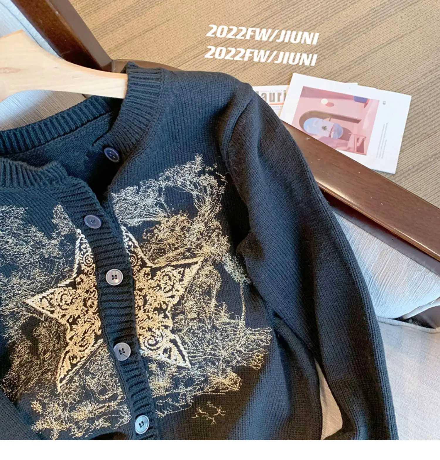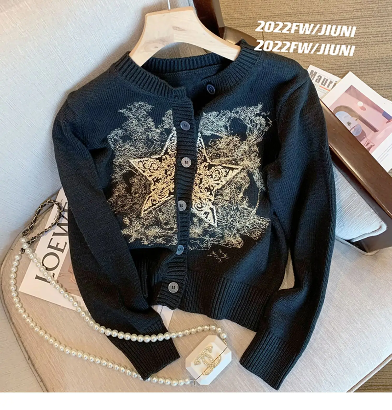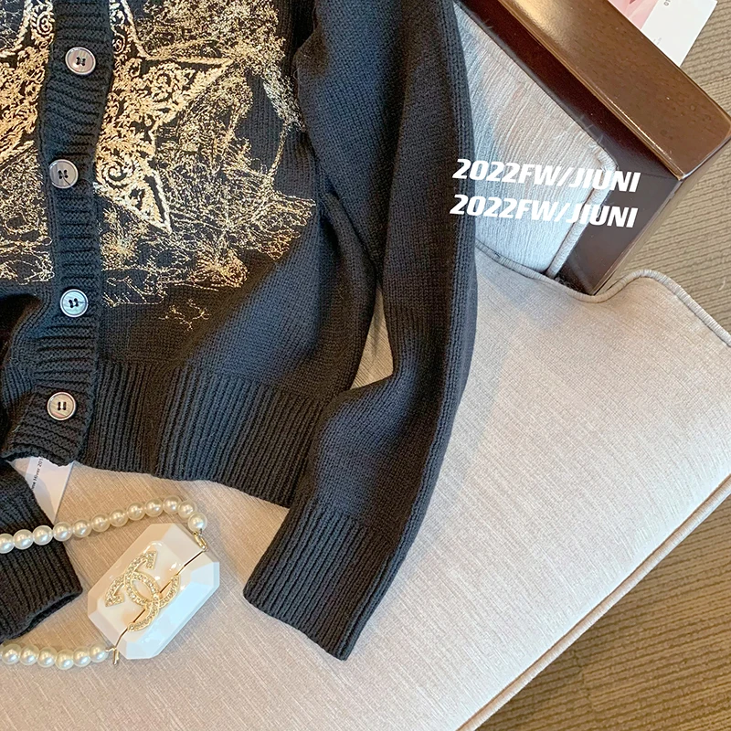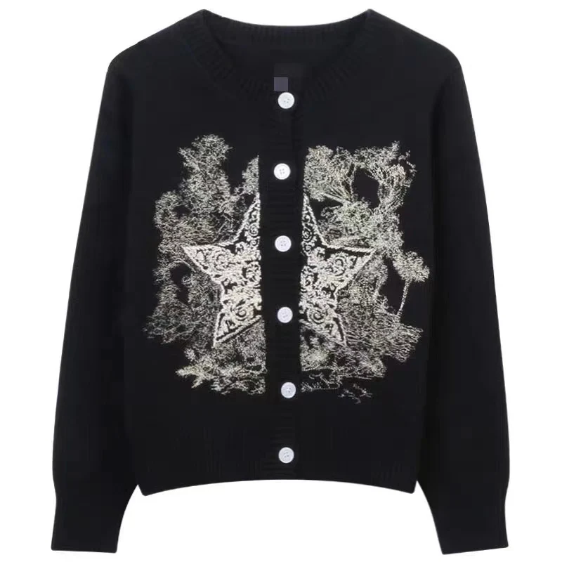 Autumn Winter Woman Old Money Vintage Harajuku Fashion Embroidery Cardigan O-Neck Single-breasted Sweater Long Sleeve Aesthetic