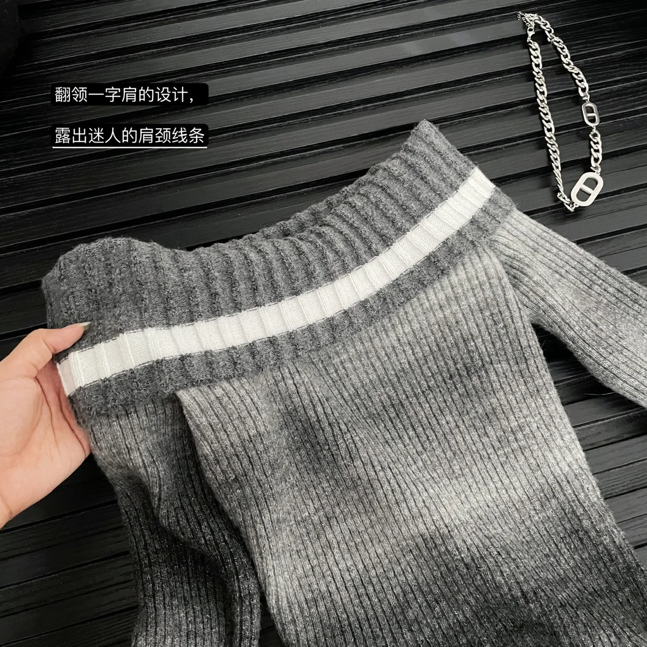 Neckline: slash neck