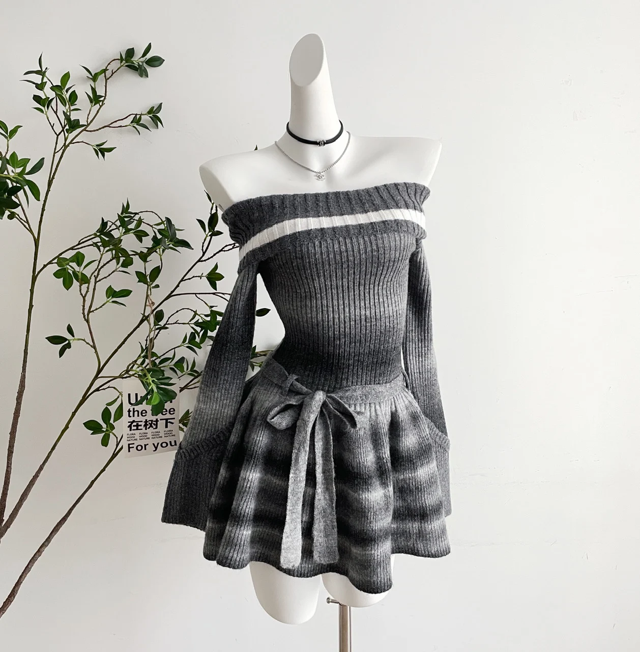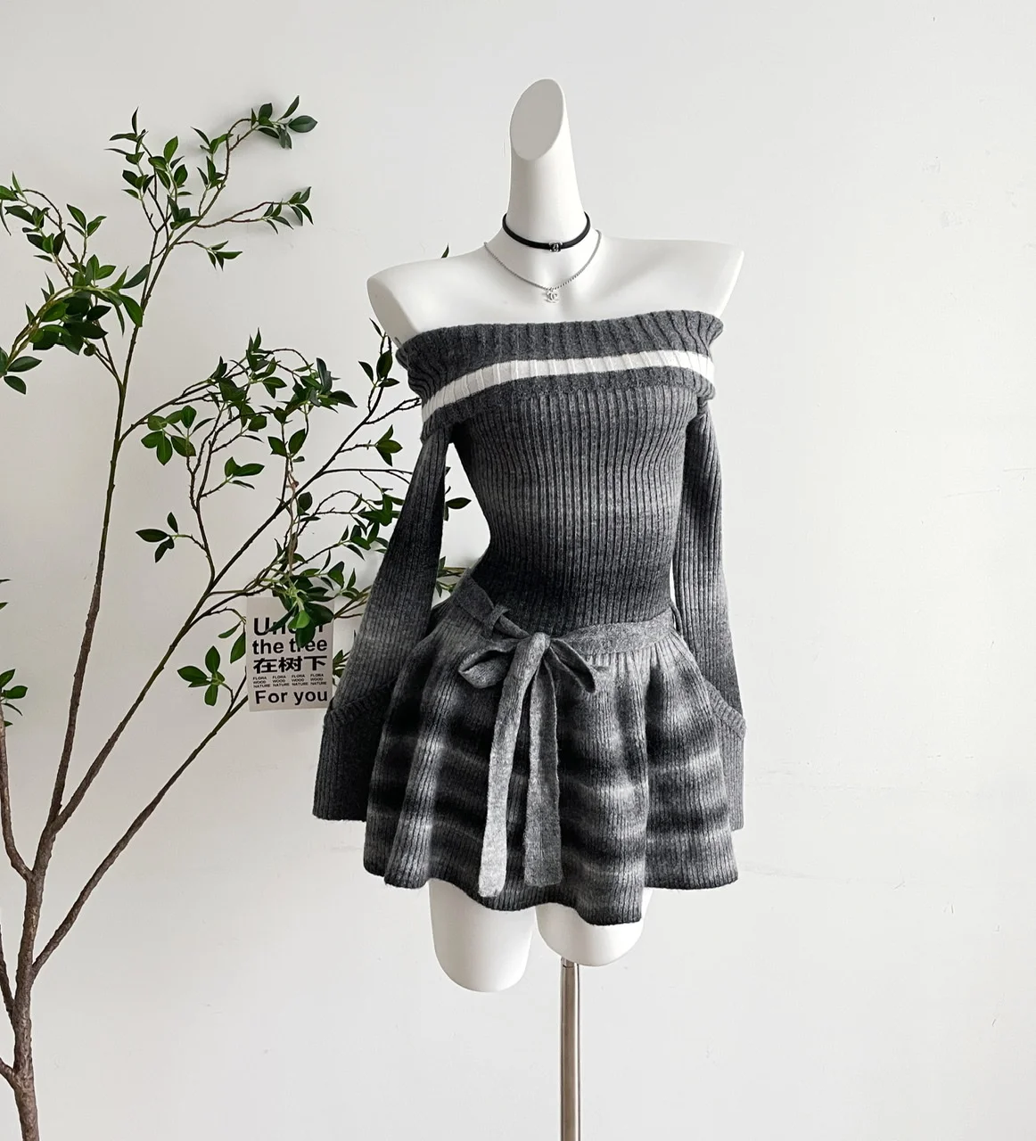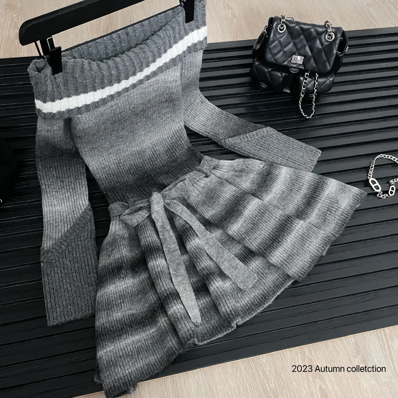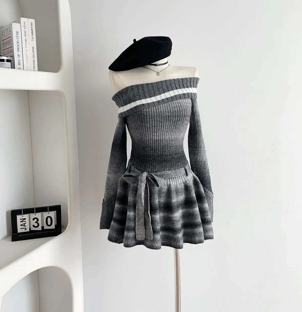 Autumn Winter Women Vintage Korean Long Sleeve Evening Slash Neck Knit Dress Party Gyaru Mini Ruffles Romantic Frocks One-Piece