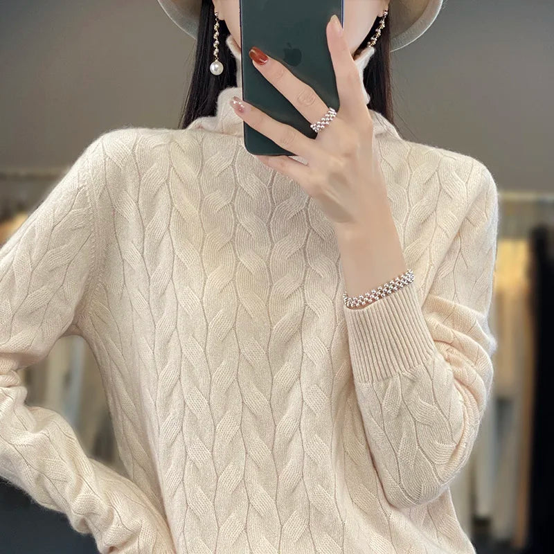 Autumn Winter Women's Soft Wool Sweater Pile Collar Twisted Thickened Pullover Casual Basis Top Cashmere Female Knitwear