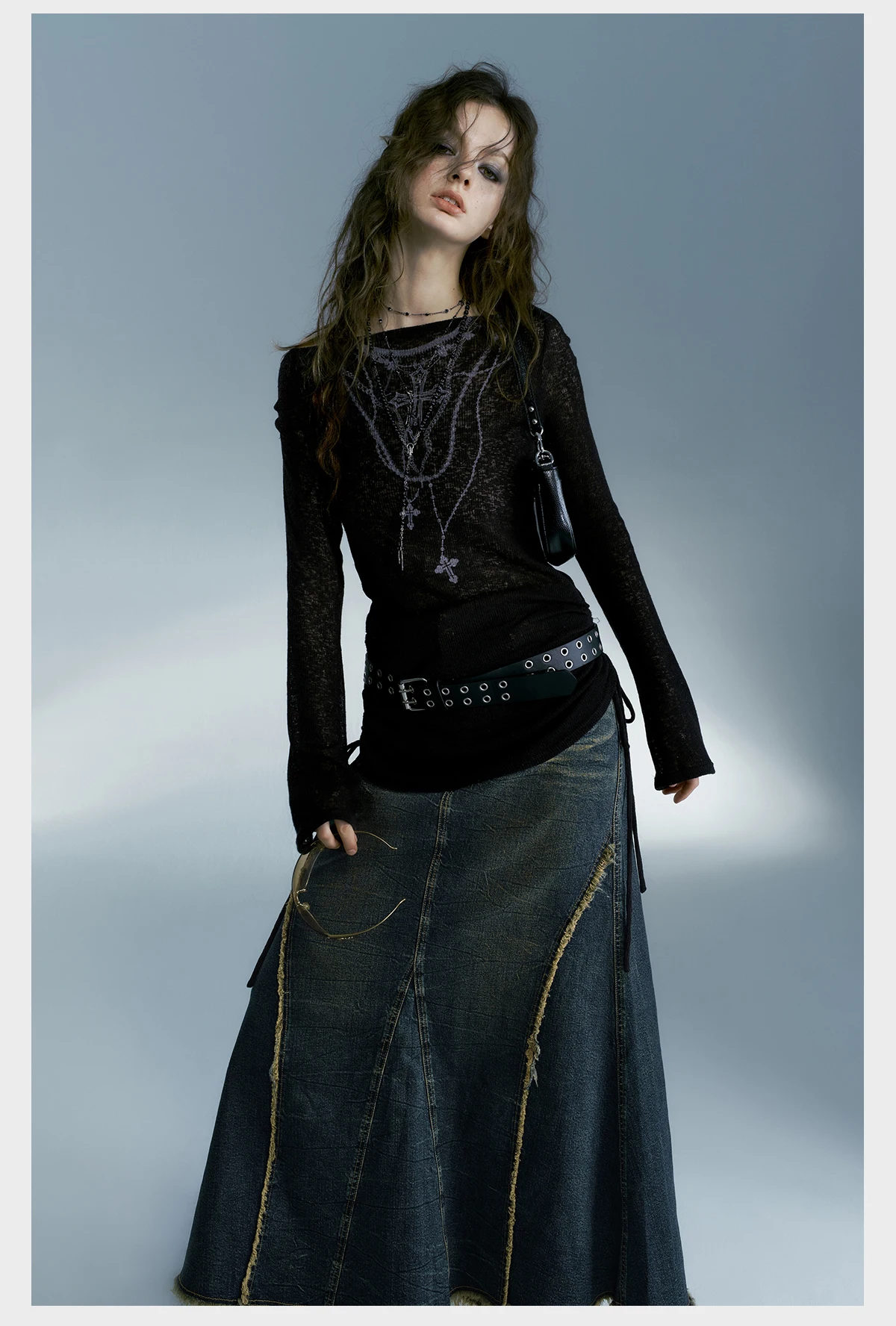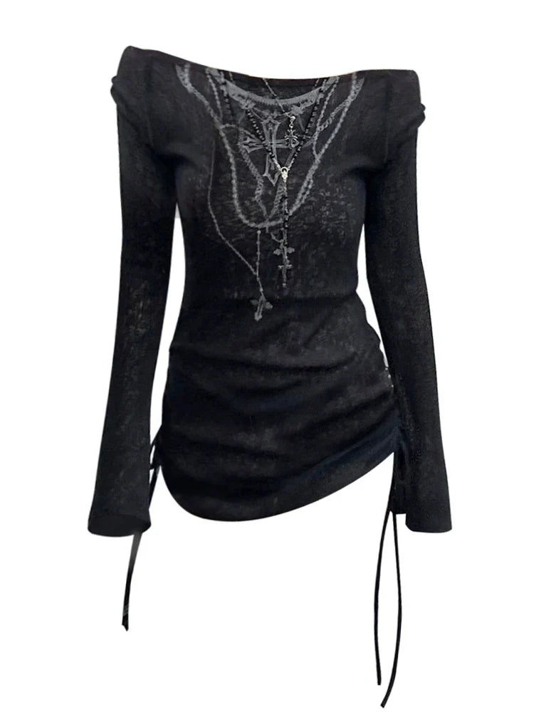 Autumn Women Gothic Harajuku Top Graphic Grunge T-Shirts Japanese Trashy Y2k Long Sleeve Tees Vintage 2000s Streetwear Baddie