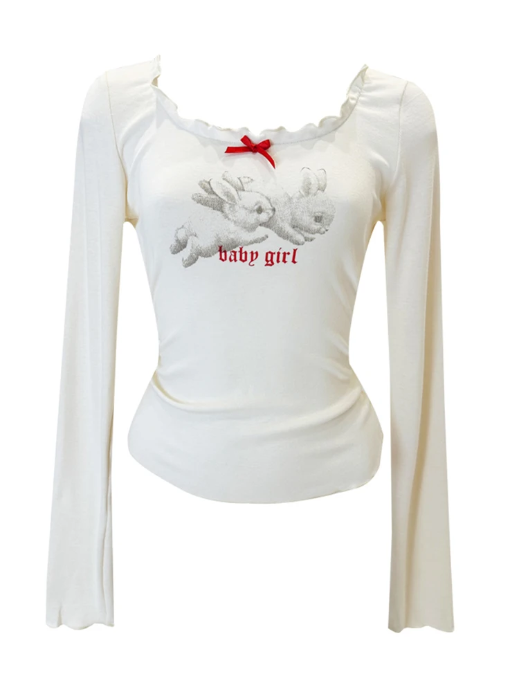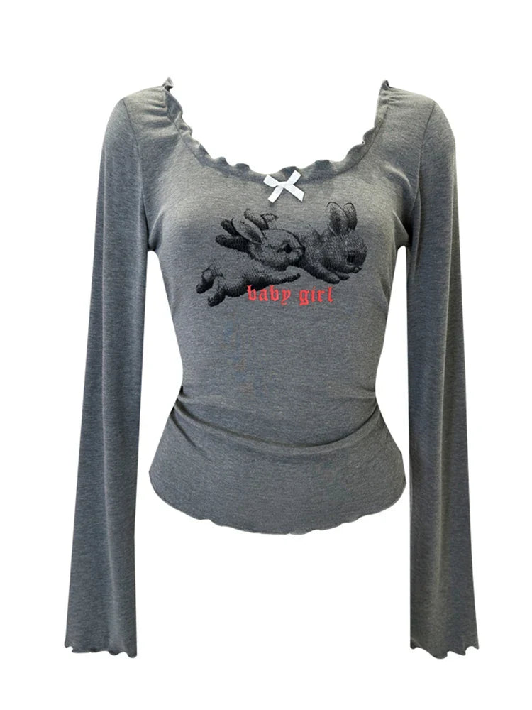 Autumn Women Korean Fashion Coquette Graphic Mori Girl T-Shirts Kawaii Tees Long Sleeve fairycore Crop Tops Gyaru Y2k Aesthetic