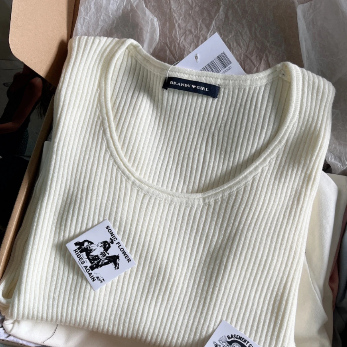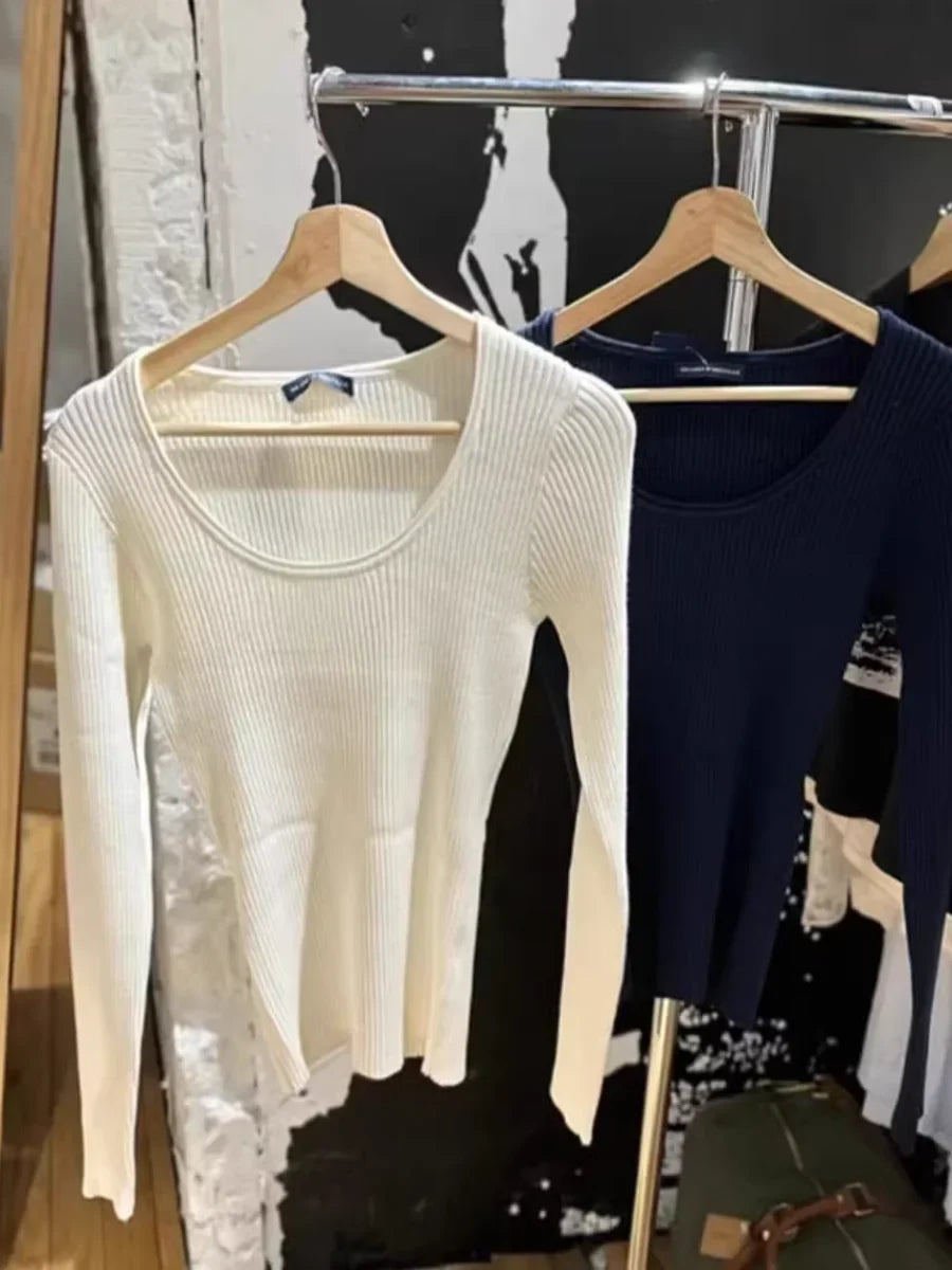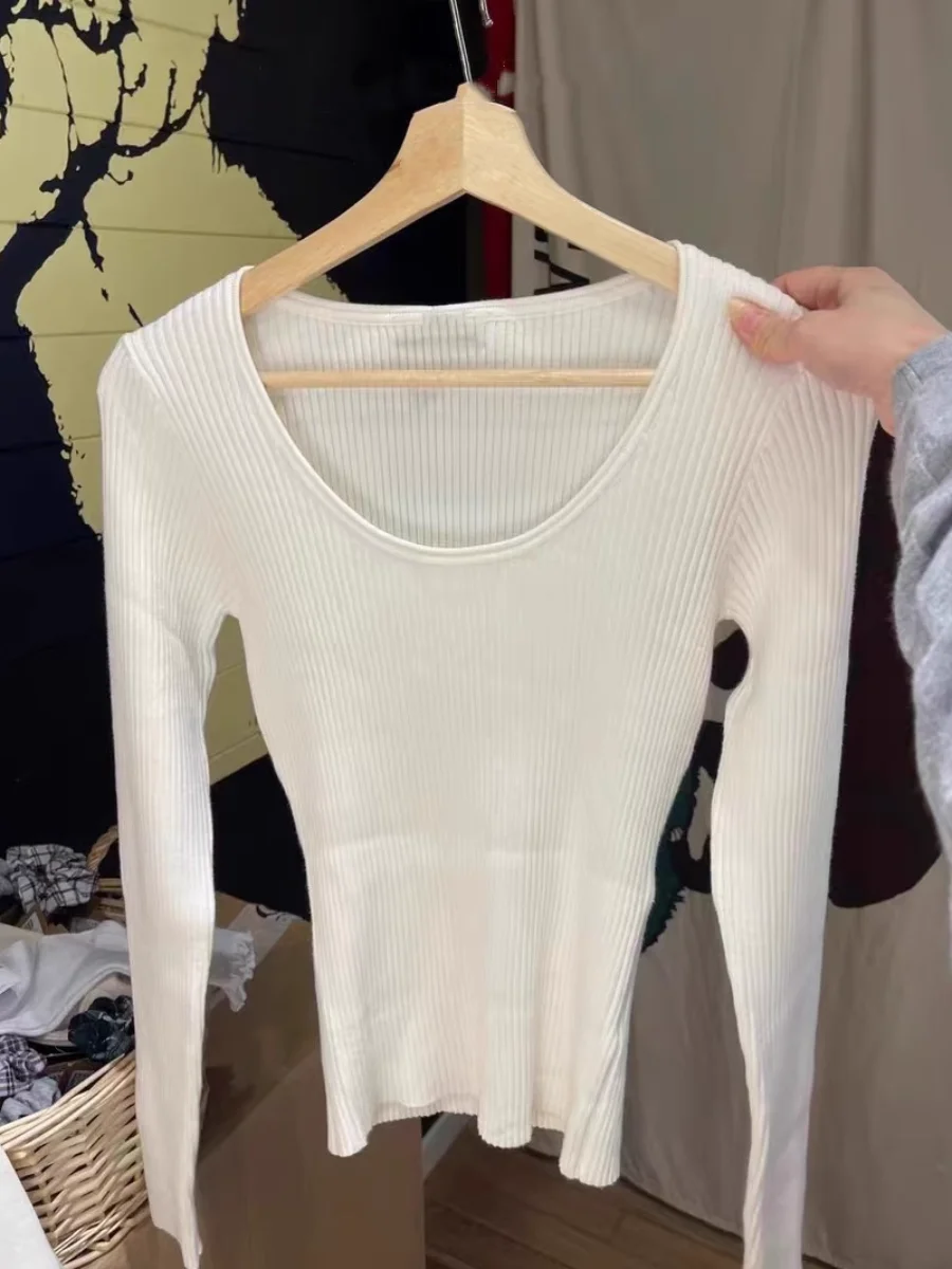 Basic Ribbed Crop Top for Women Solid Sexy U Neck Slim Cotton Long Sleeve Pullover Female Autumn Sweet Knitted Sweater Tops