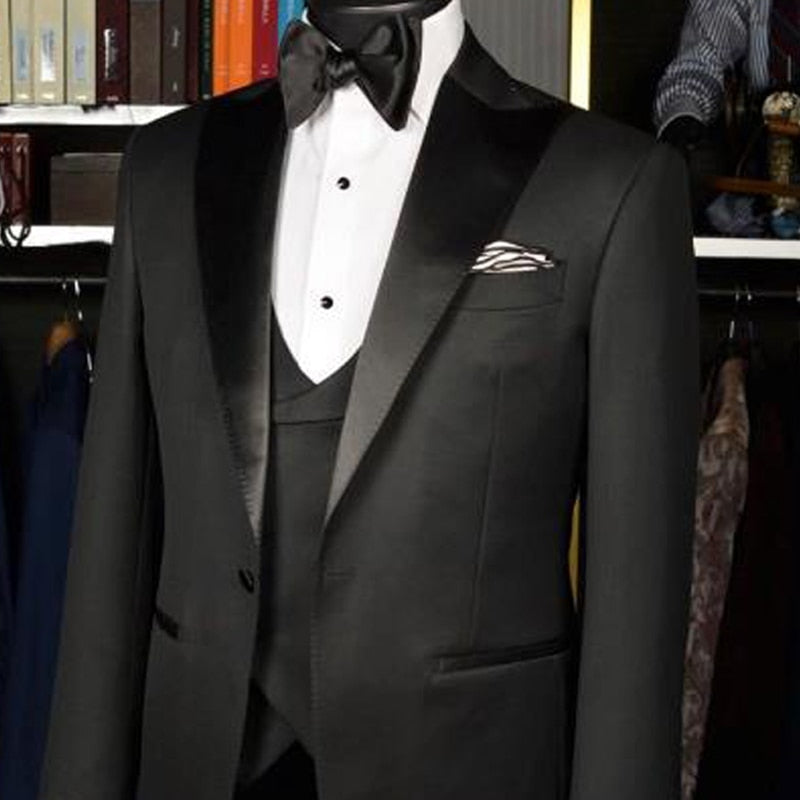maoxiangshop Black Slimming Wedding Tuxedos for Groom 3 piece Custom Formal Business Men Suits Set Jacket Pants with Pants Man Fashion
