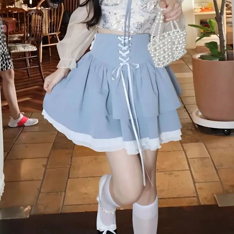 Kawaii Mini Skirt korean style Women Sexy Gyaru Pink Bow Bandage High Waist Pleated Skirts Y2k Shorts Summer 2024 layered