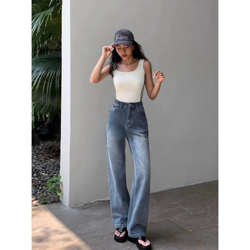 Blue Women Jeans High Waist Fashion American Vintage Streetwear Y2K NEW Wide Leg Jean Female Denim Trouser Baggy Denim Pants