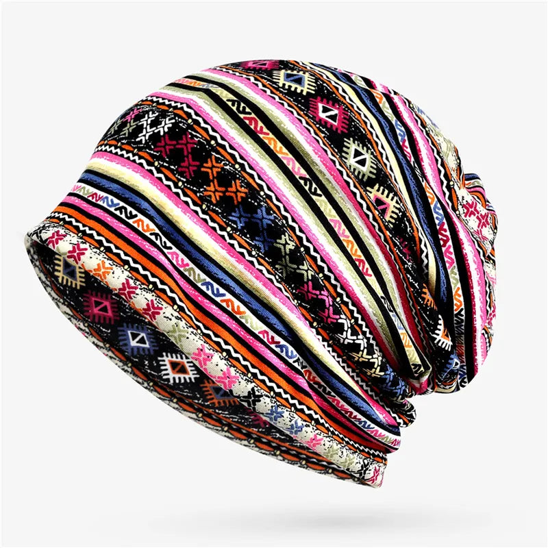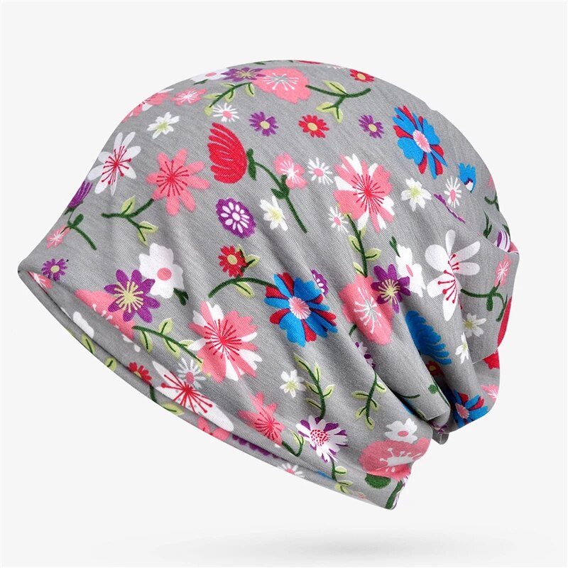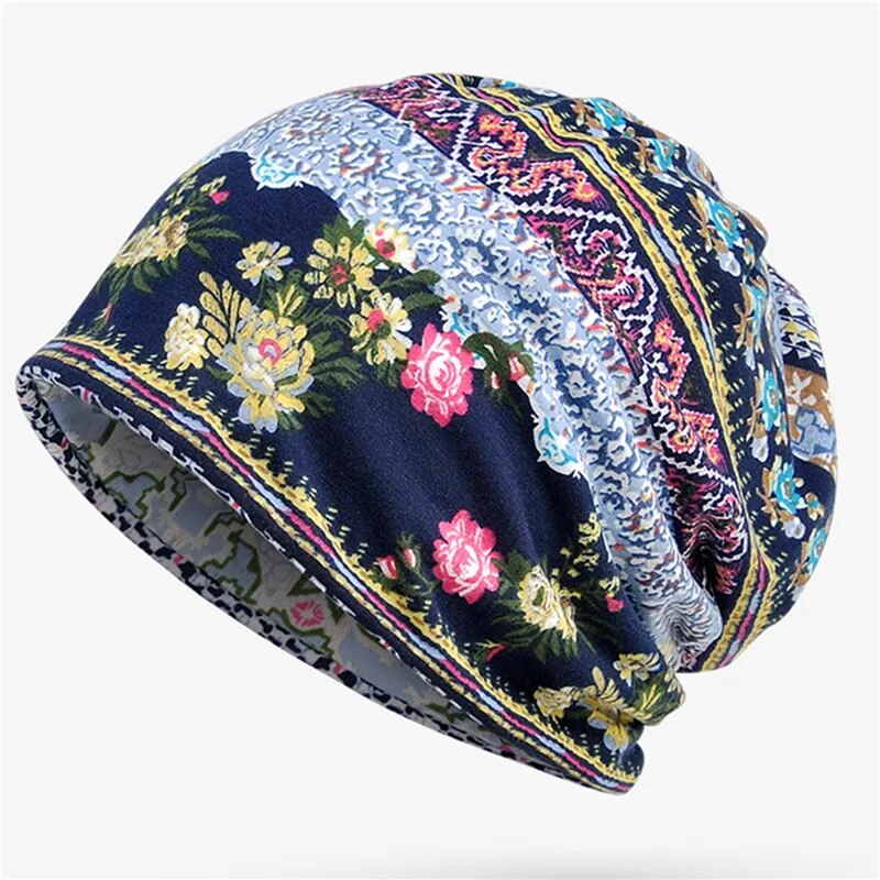 maoxiangshop Boho Style Women Beanie Cap Winter Floral Print Warm Hat Fashion Soft Thermal Skullies Hat Female Scarf Bonnet