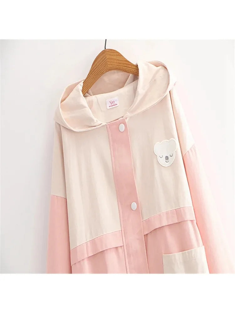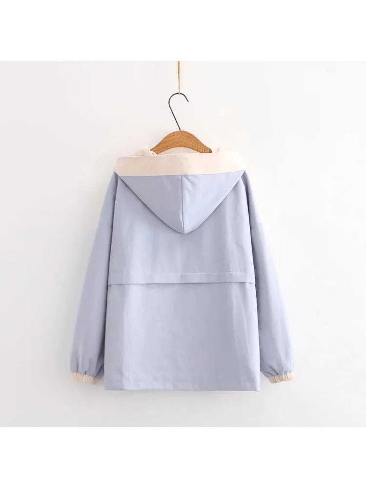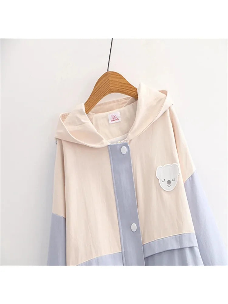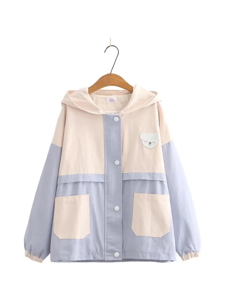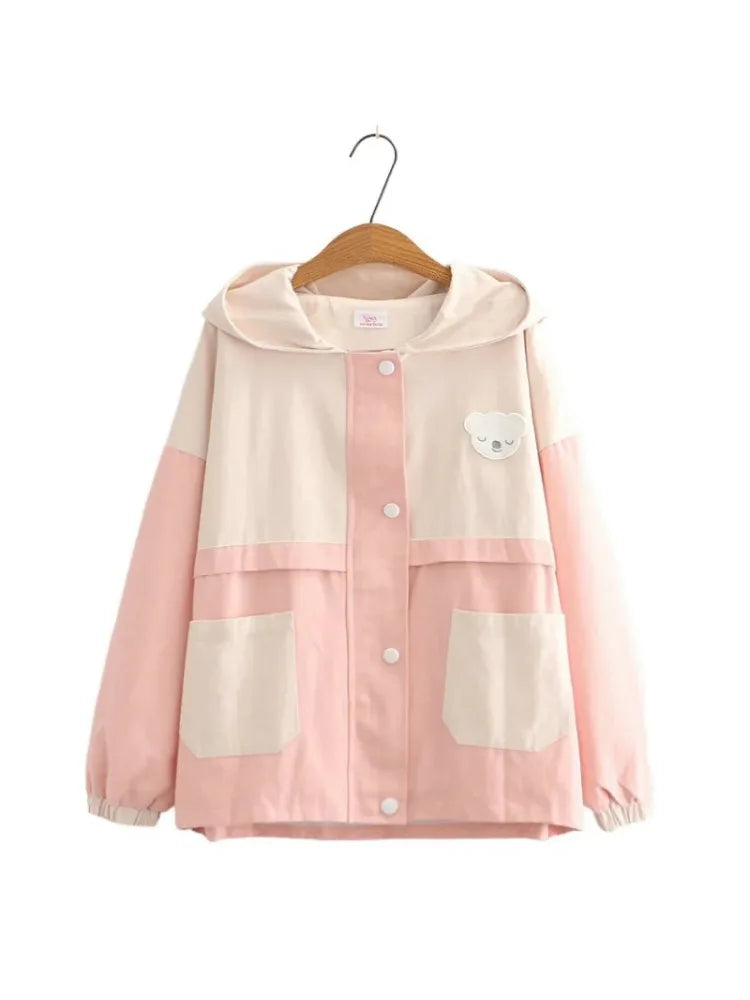 Cartoon Bear Appliques Sweet Style Jacket For Women Autumn Winter Zipper Long Sleeve Basic Jackets Outerwear Coat