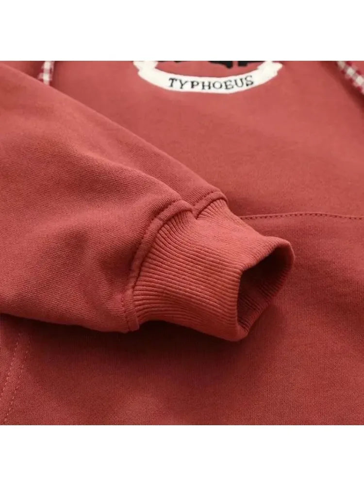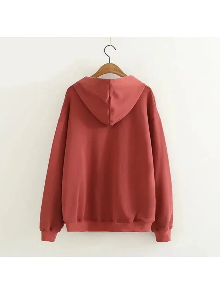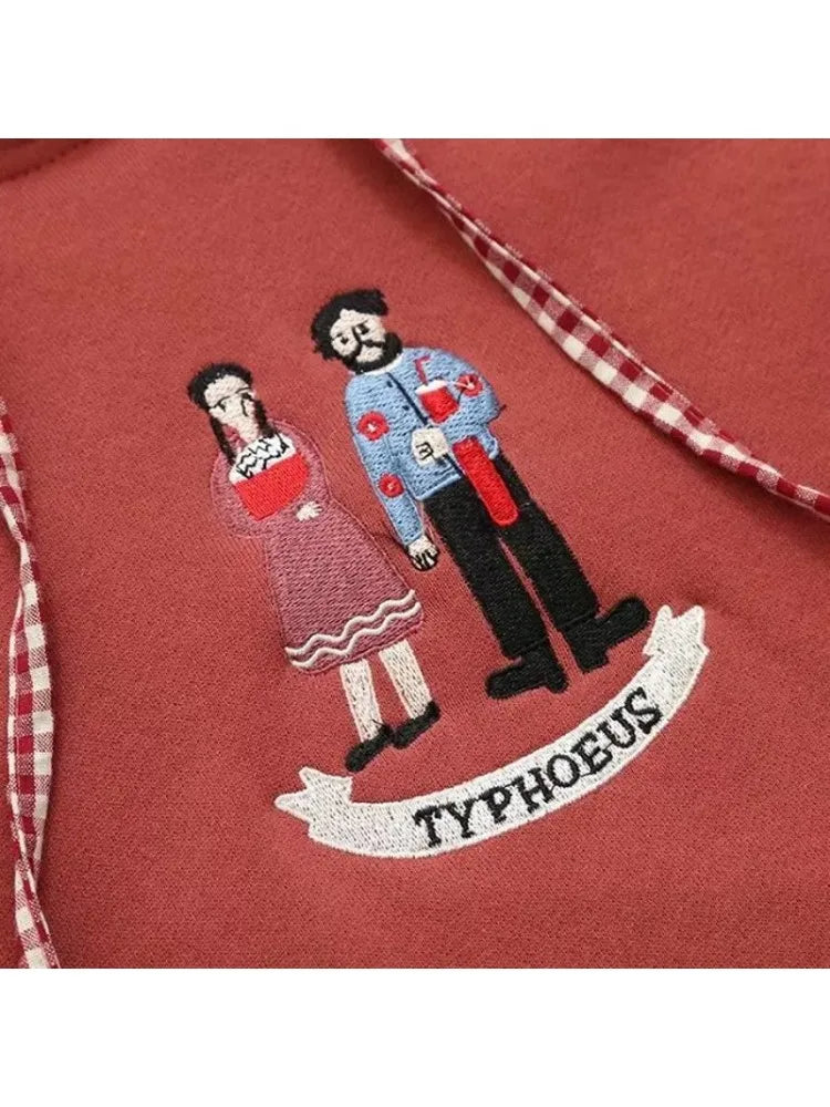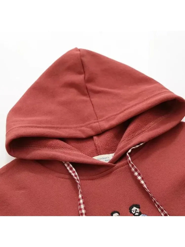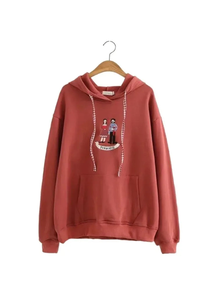 Cartoon Embroidery Women Hoodies Sweatshirts Cotton Sudaderas Mujer Long Sleeve Pocket Drawstring Hooded Pullover Tracksuit