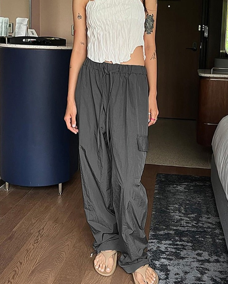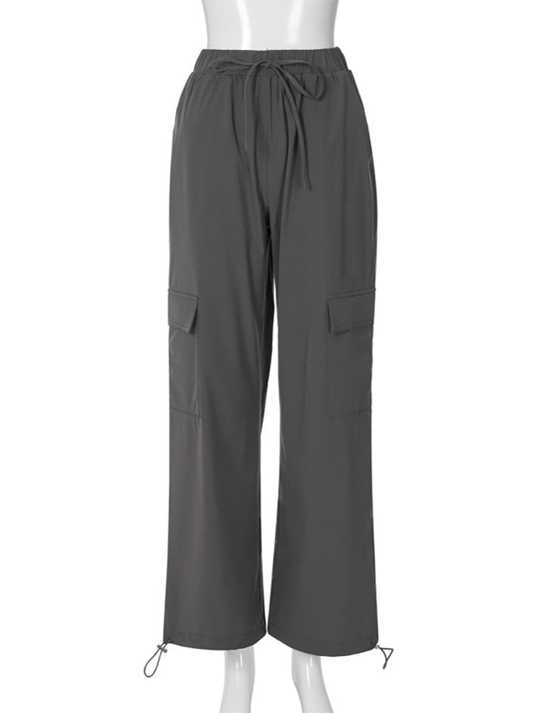 Casual Drawstring Women Pants Cargo Y2k Low Waist Loose Baggy Joggers Wide Leg Trousers Summer Harajuku Sweatpants