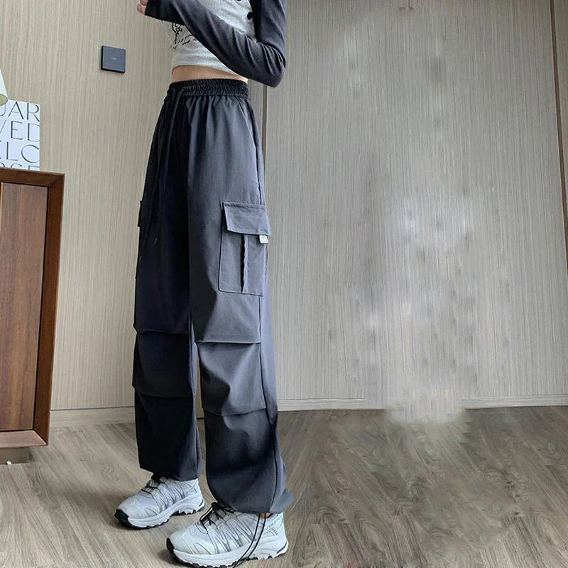 Casual Joggers Cargo Pants for Women Solid High Waist Pants Drawstring Wide Leg Baggy Trousers Y2k Streetwear Slim Sweatpants