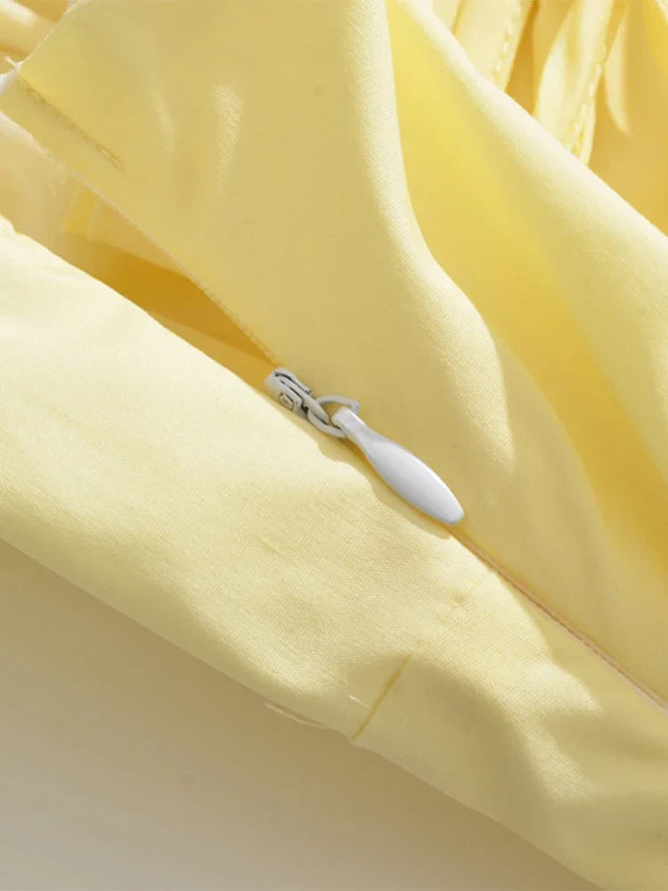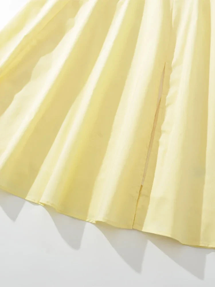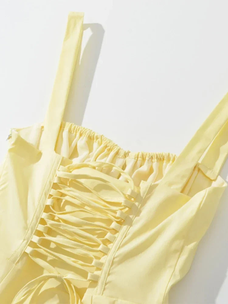 Chu Sau beauty 2024 Women Fashion Sweet Bow Tie French Midi Dress Cute Square Collar Sexy Slim Backless Split Straped Dresses