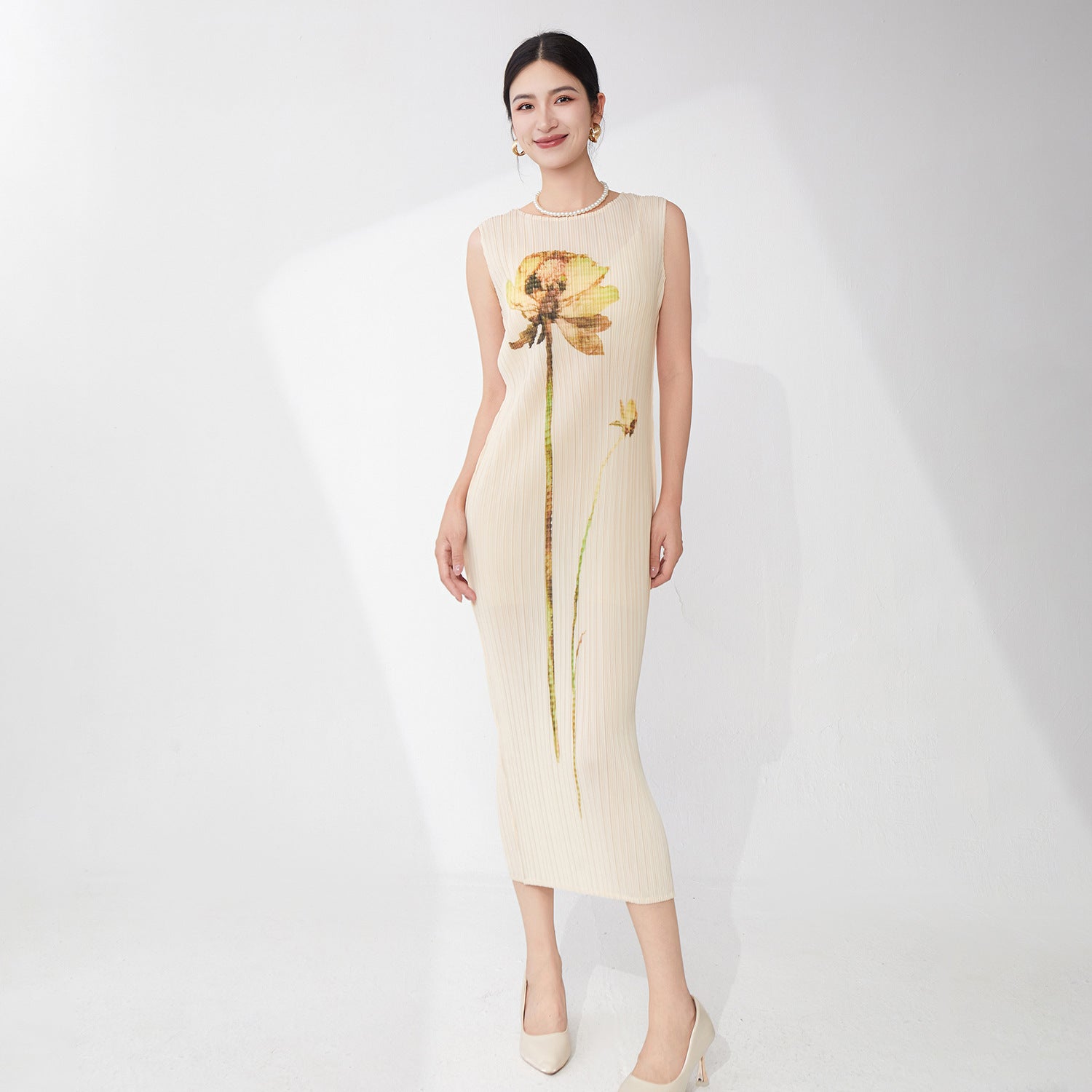 counter quality dress women's summer high-end temperament printing simple and versatile one-step straight medium and long skirt