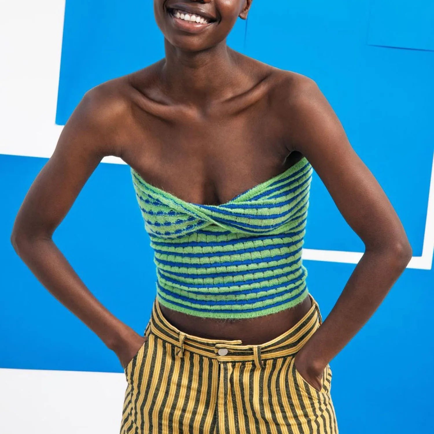 Cryptographic Knitted Sweaters Cut Out Sexy Strapless Crop Tops for Women Fashion Backless Striped Cropped Tanks Top Streetwear