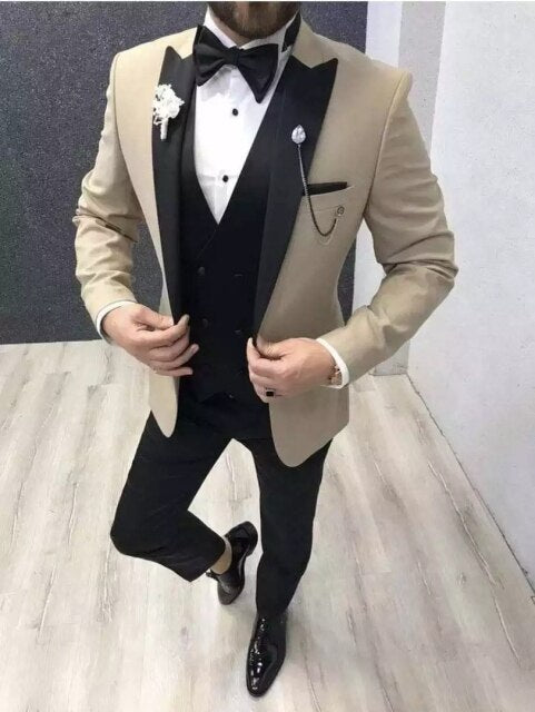 Custom Made 3-Piece Beige Smoking Blazer Casual Business Gentlemen Groom Suits Prom Suits For Men Wedding Best Man Tuxedo