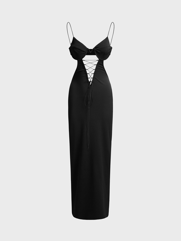 cut out Spaghetti Plain Sleeveless Maxi Dress