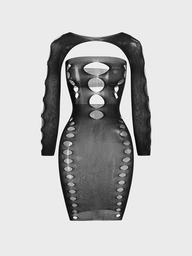 Cut Out Spaghetti Plain Three Quarter Sleeve Short Dress