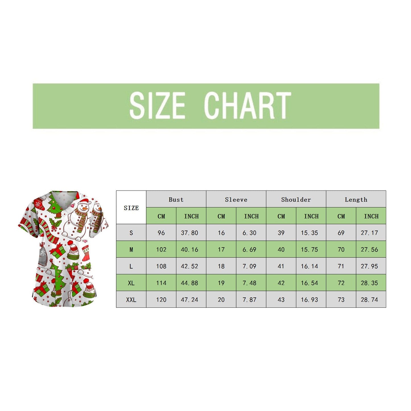 maoxiangshop Cute Cartoon Animals Print Christmas Nursing Scrubs Women Tops Short Sleeve pet salon Work Uniform Blouse Costume Shirts Female