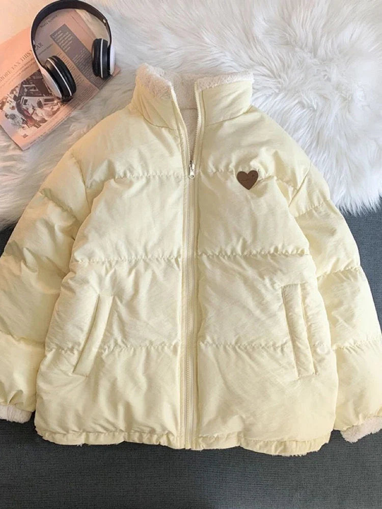 Cute Embroidery Women Parkas Coat Winter Thick Hairy Korean Loose Warm Jacket Double Sided Design Pink Student Clothes