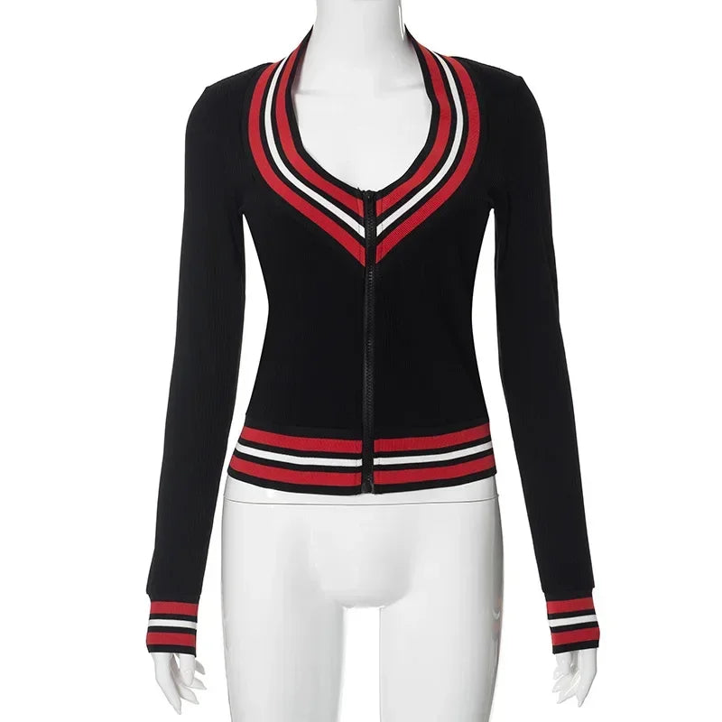 Deep V Zip Up Ribbed-knit Cardigan Preppy Style Crop Jackets for Women Short Coat Winter New in Outerwears P85-DZ27