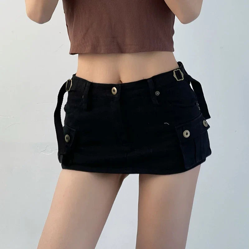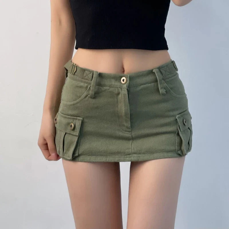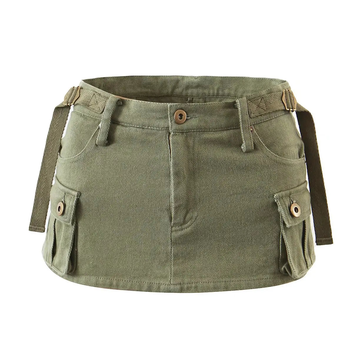 maoxiangshop Denim Cargo Mini Skirt Women Korean Style Low Waist Slim Sexy Vintage Streetwear Green Jean Skirt Y2k Girl Summer