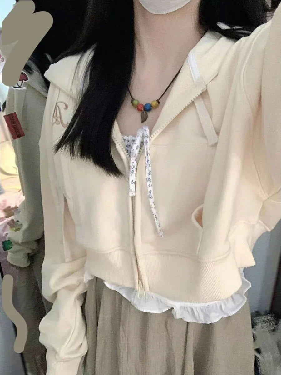 Deeptown Korean Streetwear Letter Printed Cropped Hoodies Women Harajuku Short Hooded Sweatshirts Long Sleeve Crop Tops Female