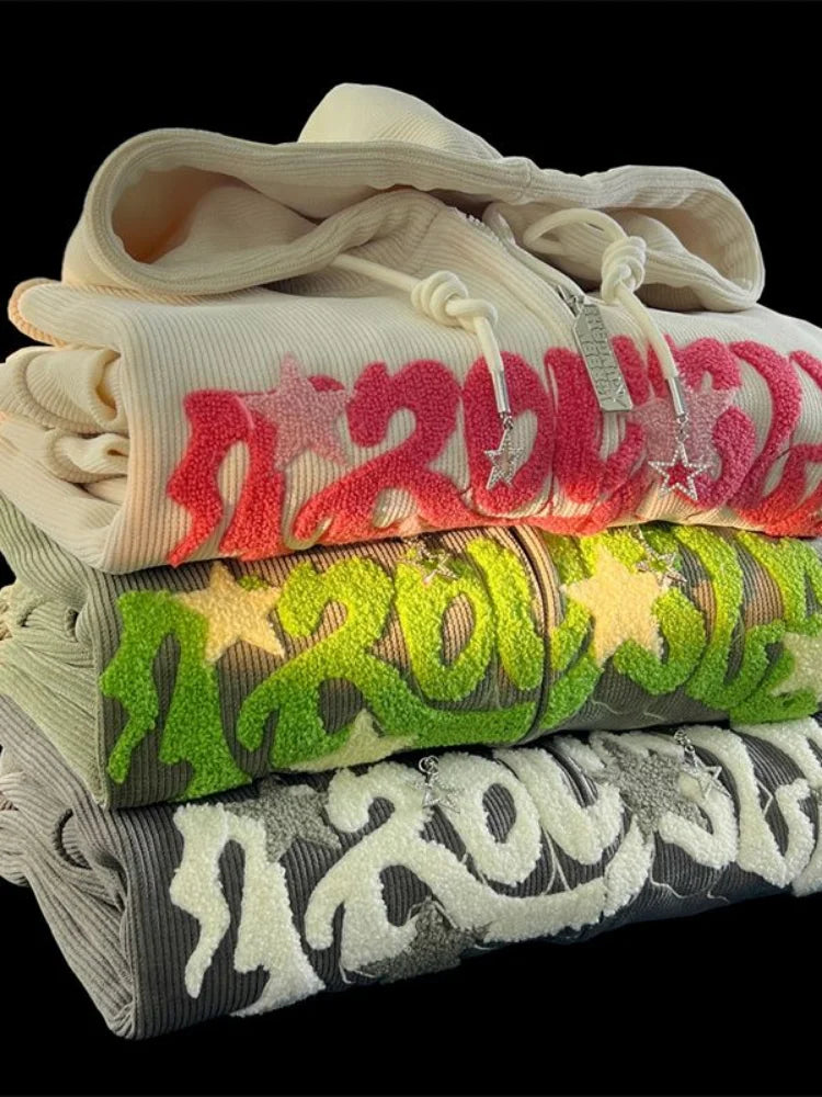 Deeptown Oversized Star Graphics Print Hoodies Women American Retro Graphic Hooded Sweatshirts Vintage Streetwear Zip Up Tops