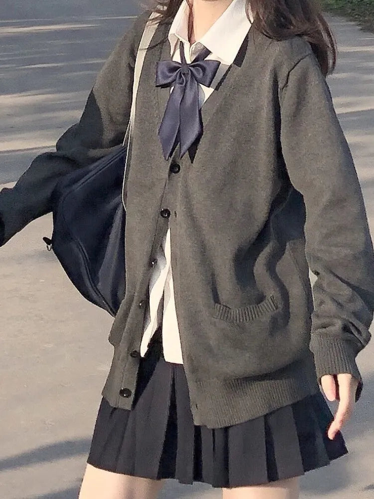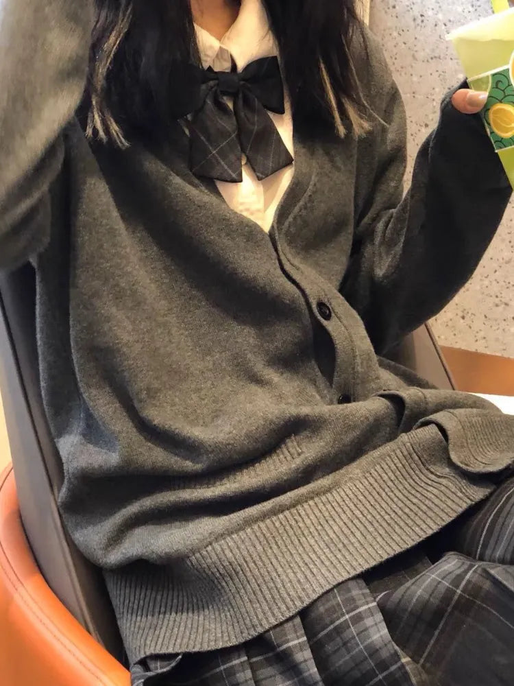Preppy Style Knitted Cardigan Women Harajuku Vintage V-neck Oversized Sweater Sweet Casual Long Sleeve Tops Japanese JK