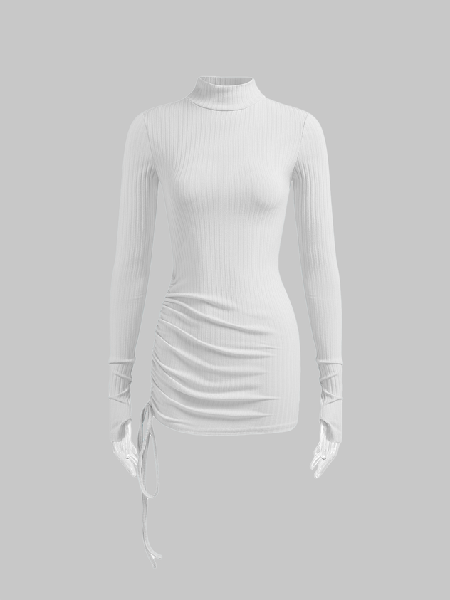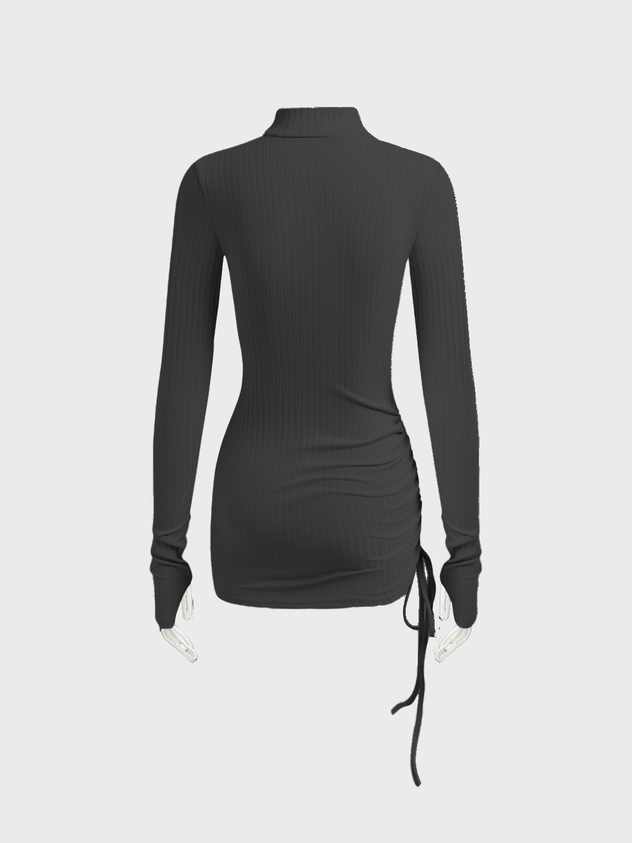Drawstring Stand Collar Plain Long Sleeve Short Dress