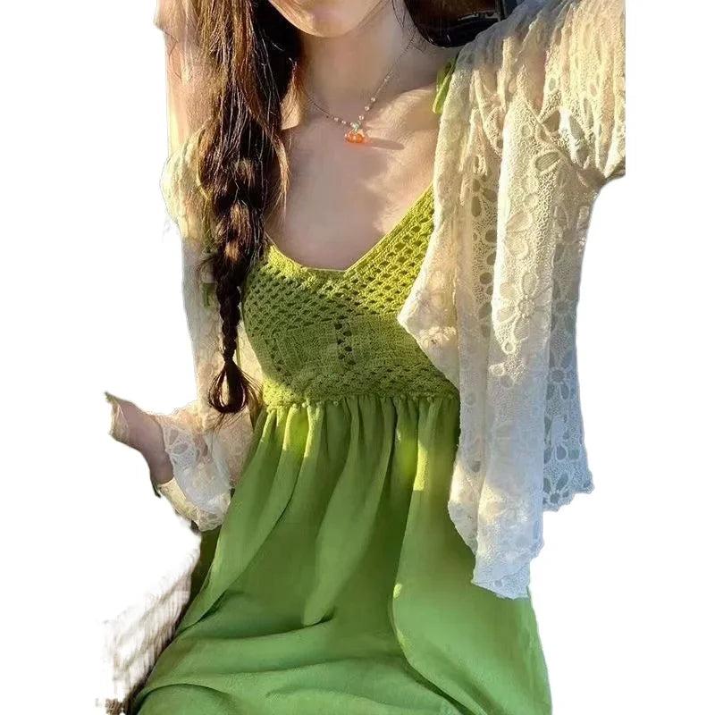 Dress holiday wind fruit green skirts summer cool lazy wind hook flower hollow halter dress two-piece suit sweet fashion fresh