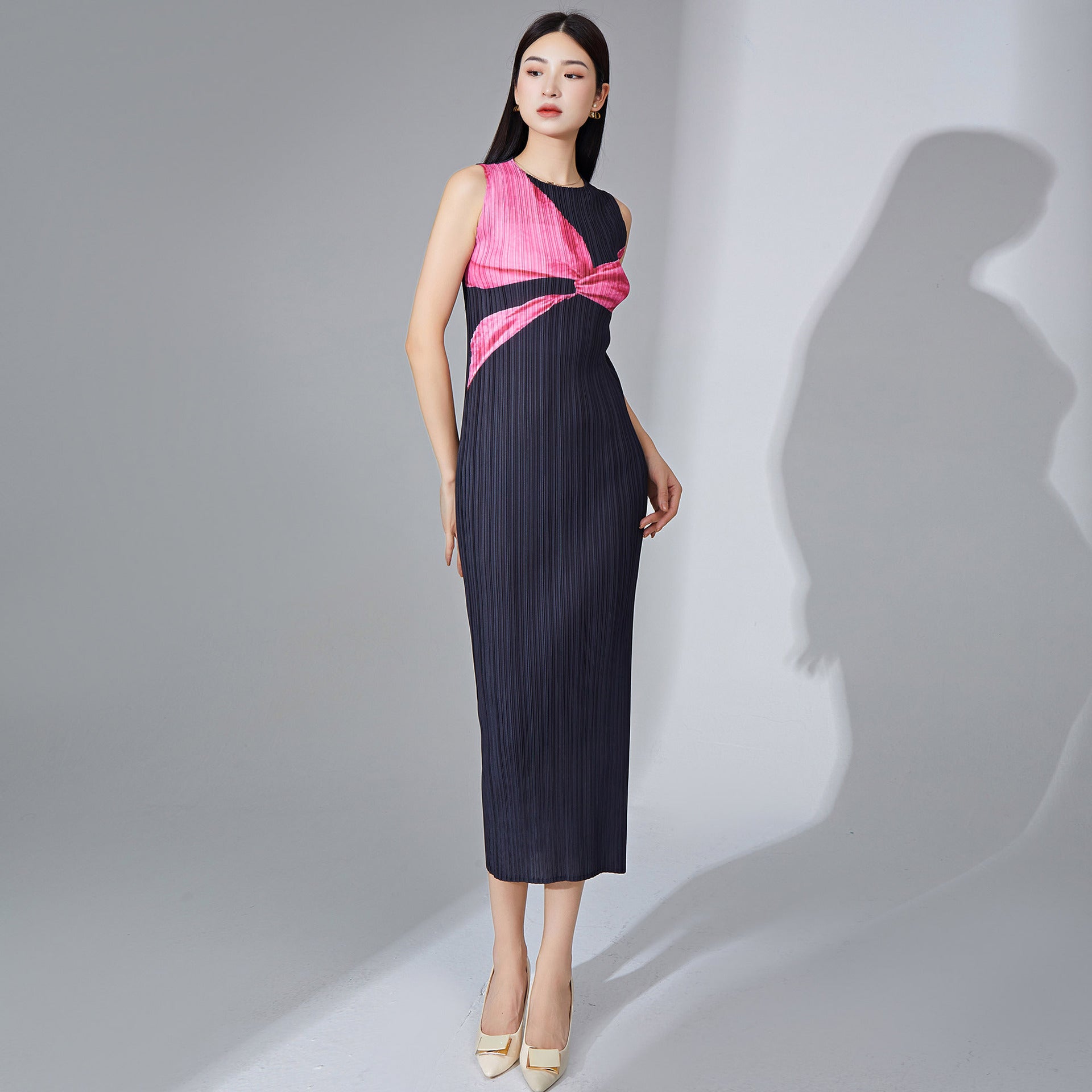 dress long high-end temperament sleeveless printing fashionable and elegant versatile one-step skirt pleated skirt summer