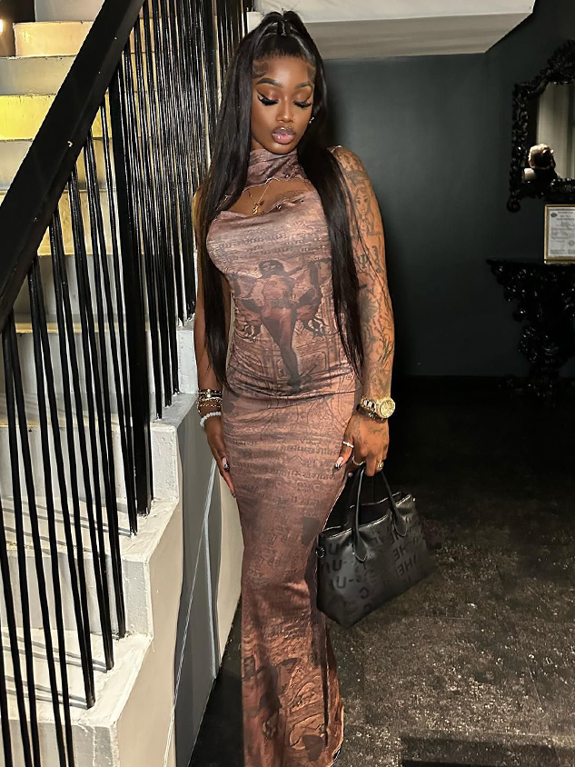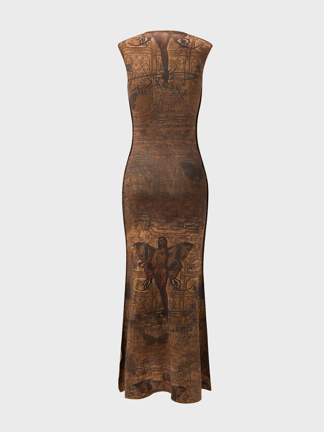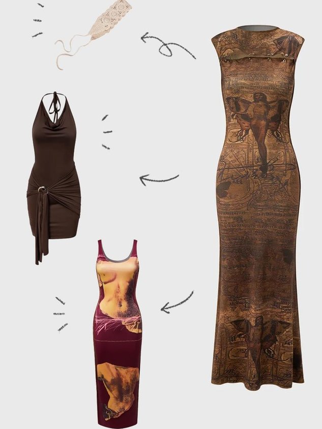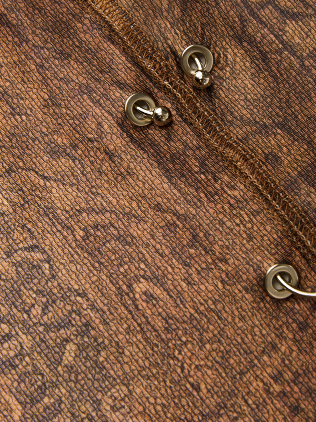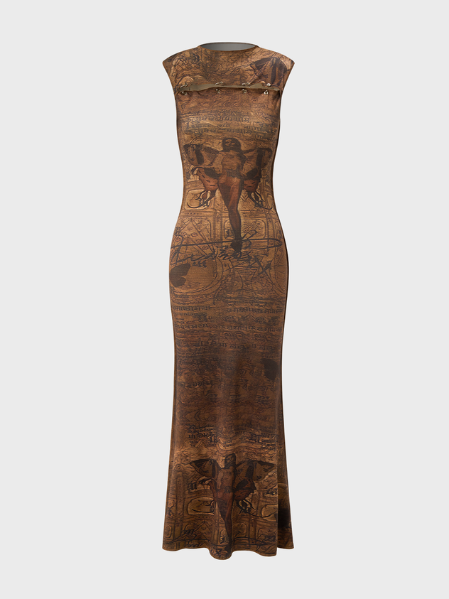 Edgy Brown Vintage Cut Out Metal Dress Midi Dress