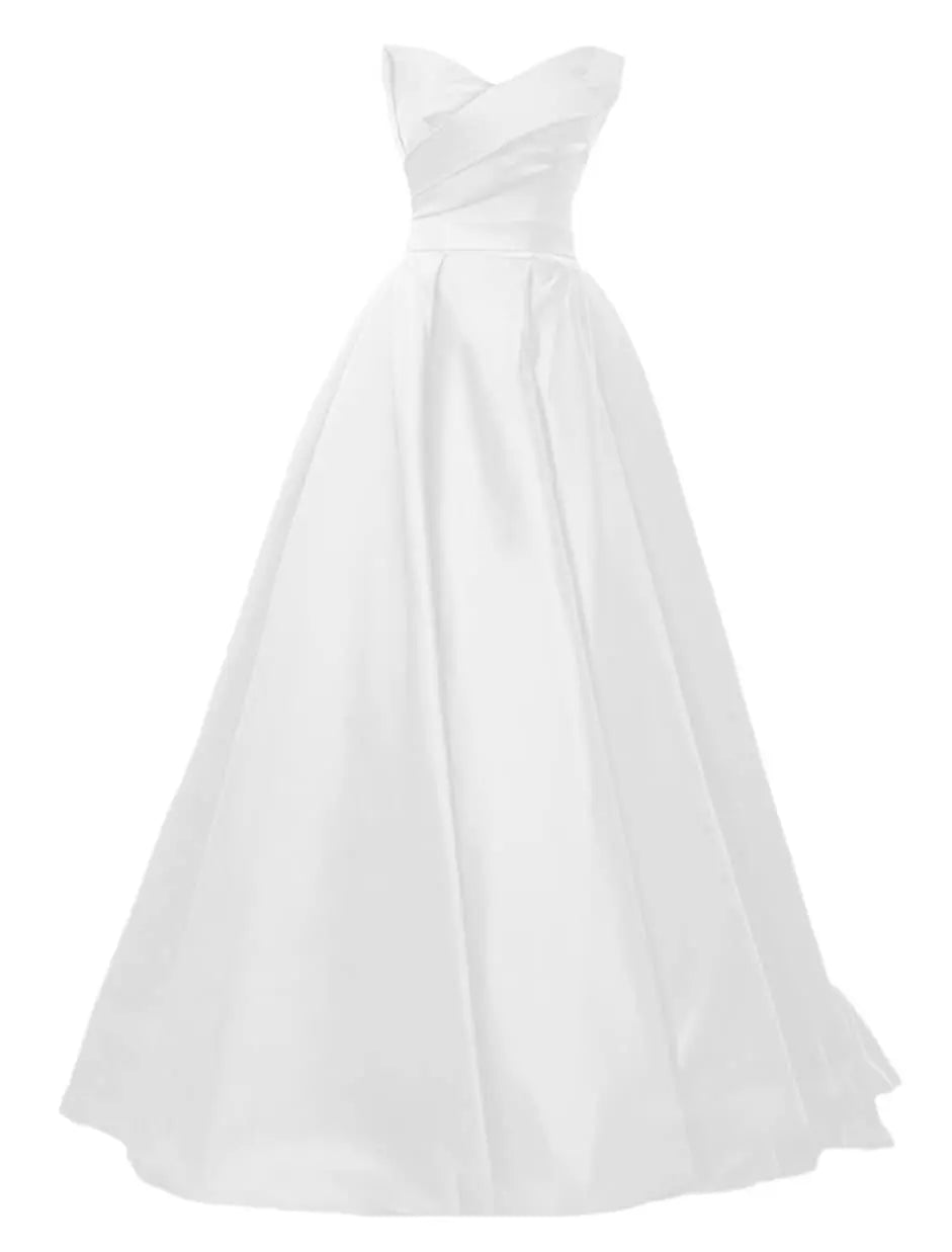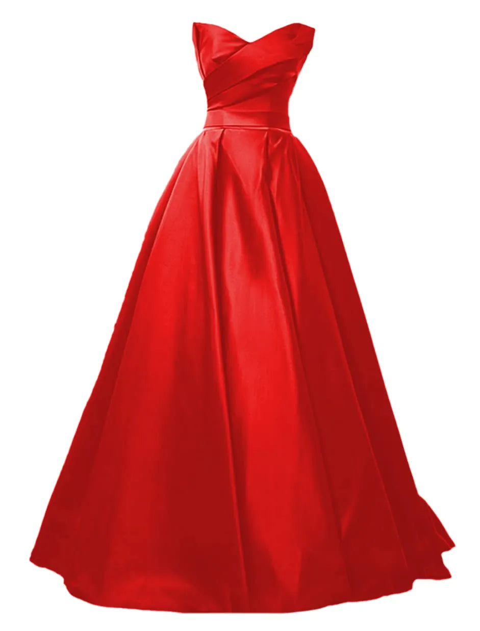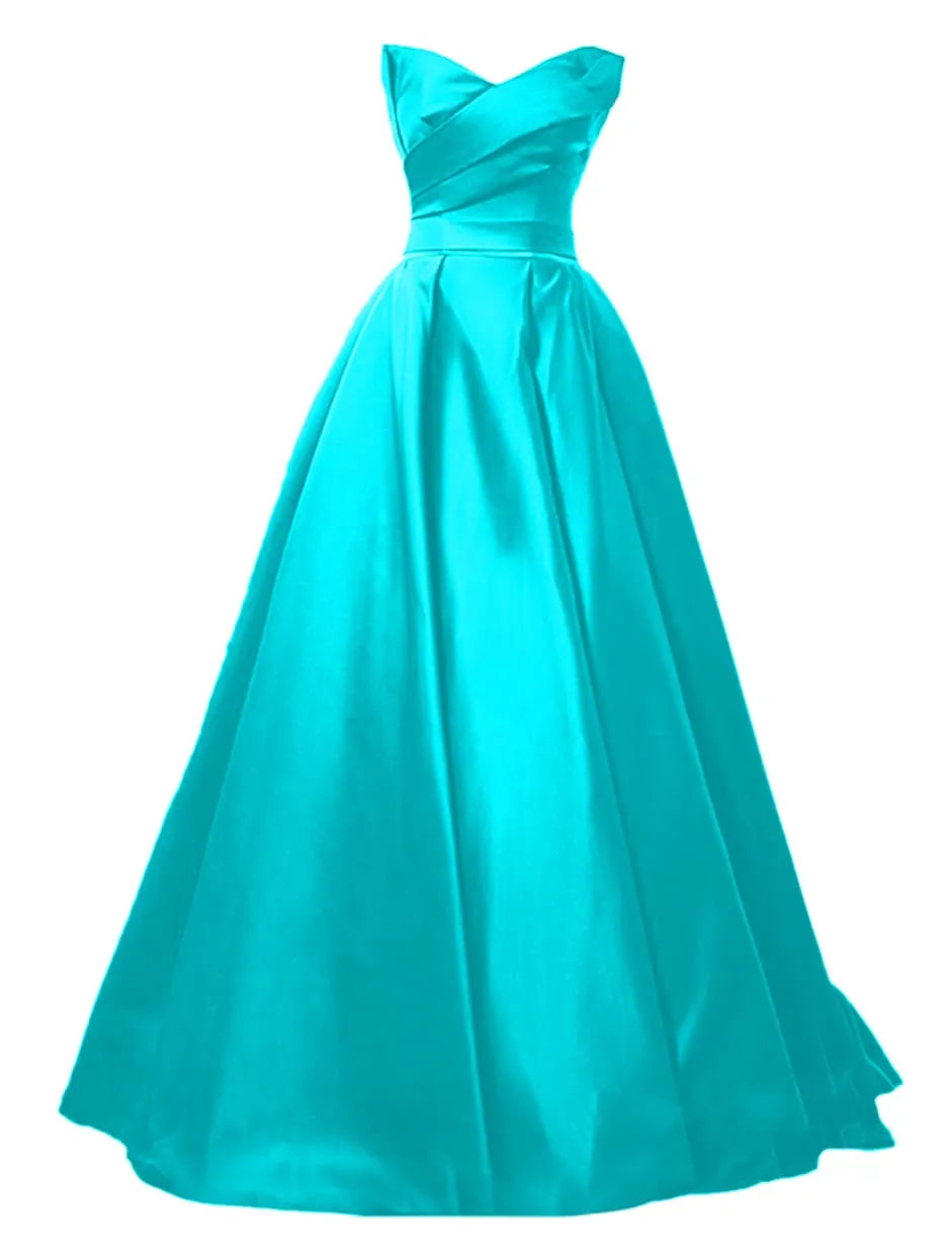maoxiangshop Elegant A-Line Strapless Satin Evening Dresses for Women Sweetheart Neck Back Lace-up Floor Length Prom Gowns with Pleat