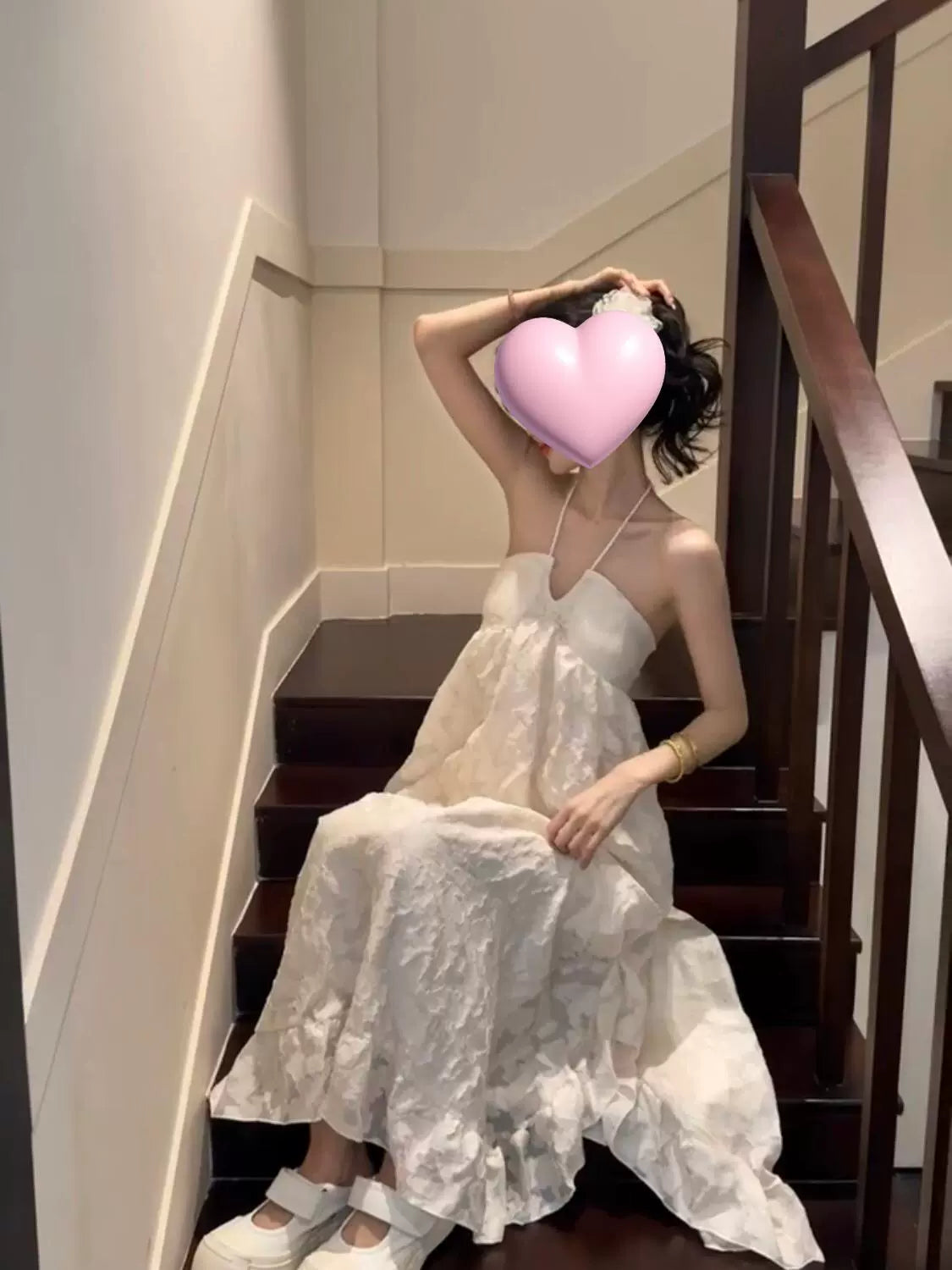 elegant neck V-neck dress women's seaside vacation wind backless heavy industry long dress super fairy loose a-word skirt