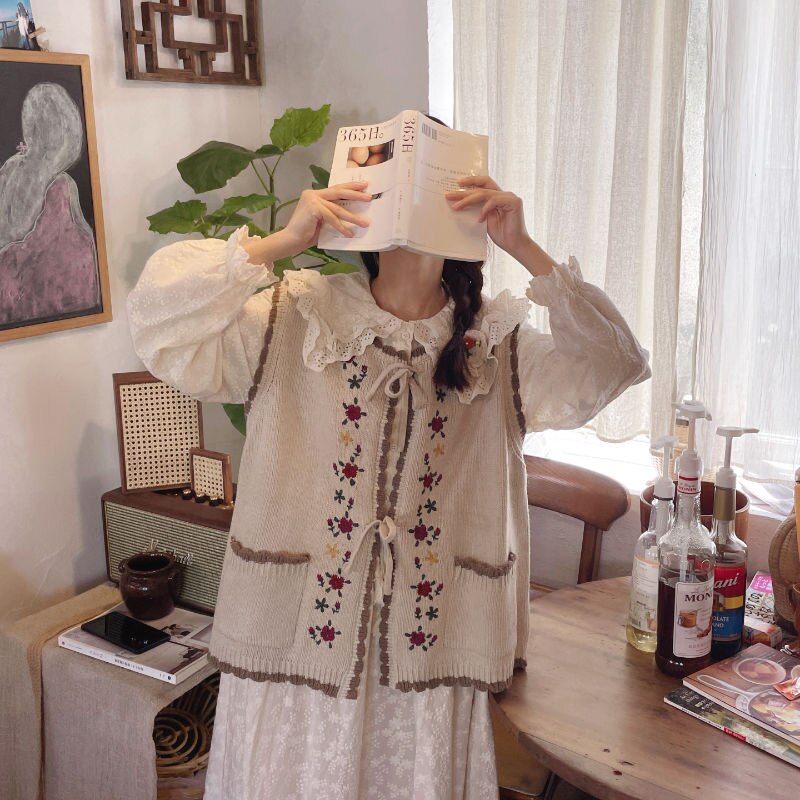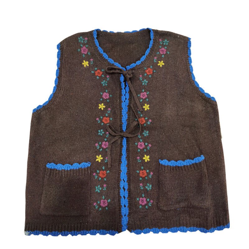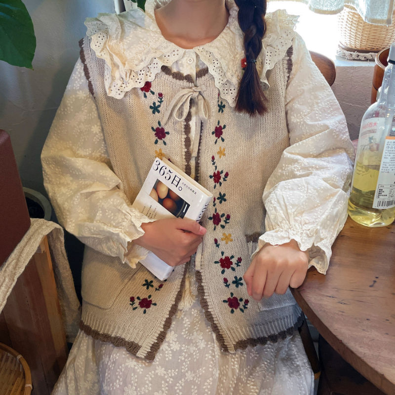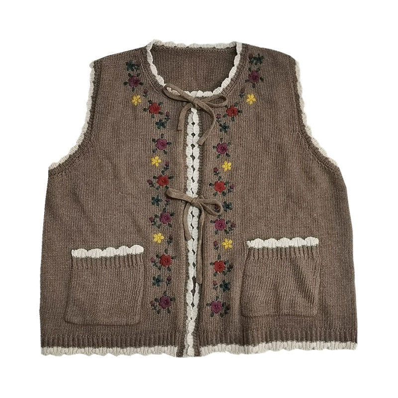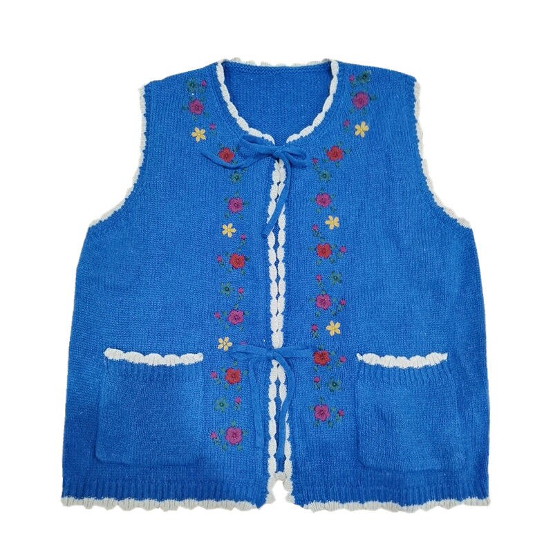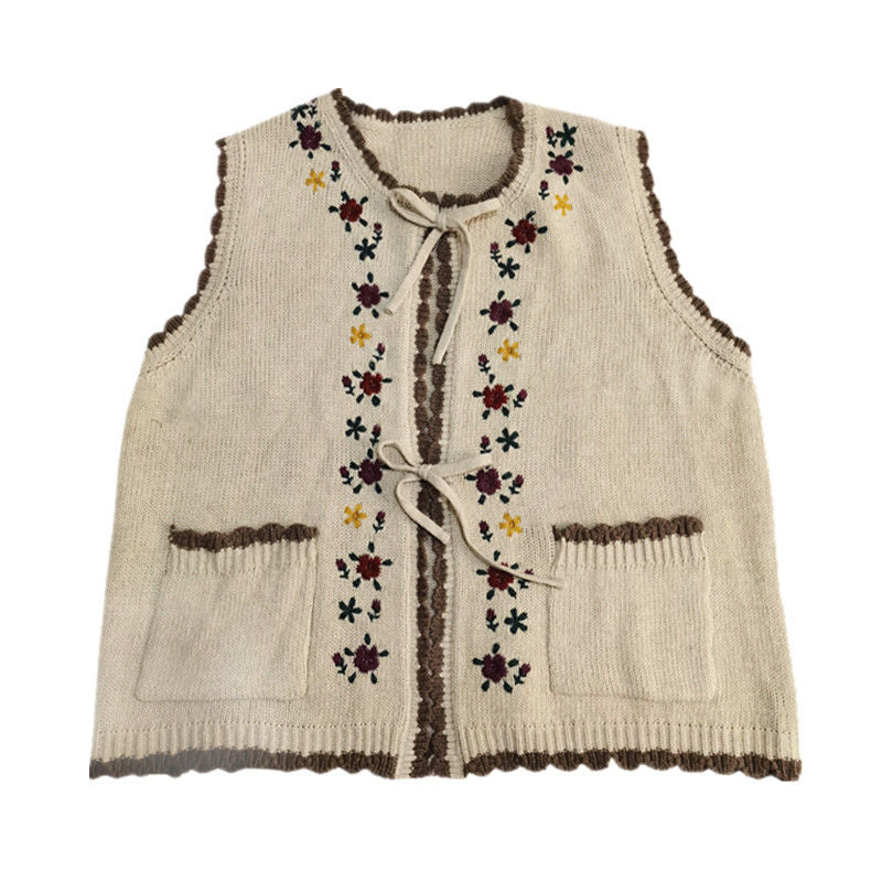 Embroiedry Flower Hollow Out Vest Top Women V neck Sleeveless Sweater Vest
