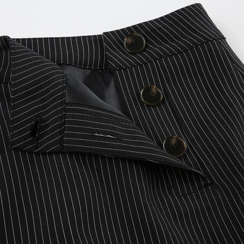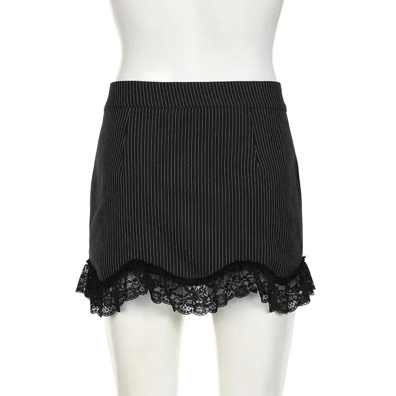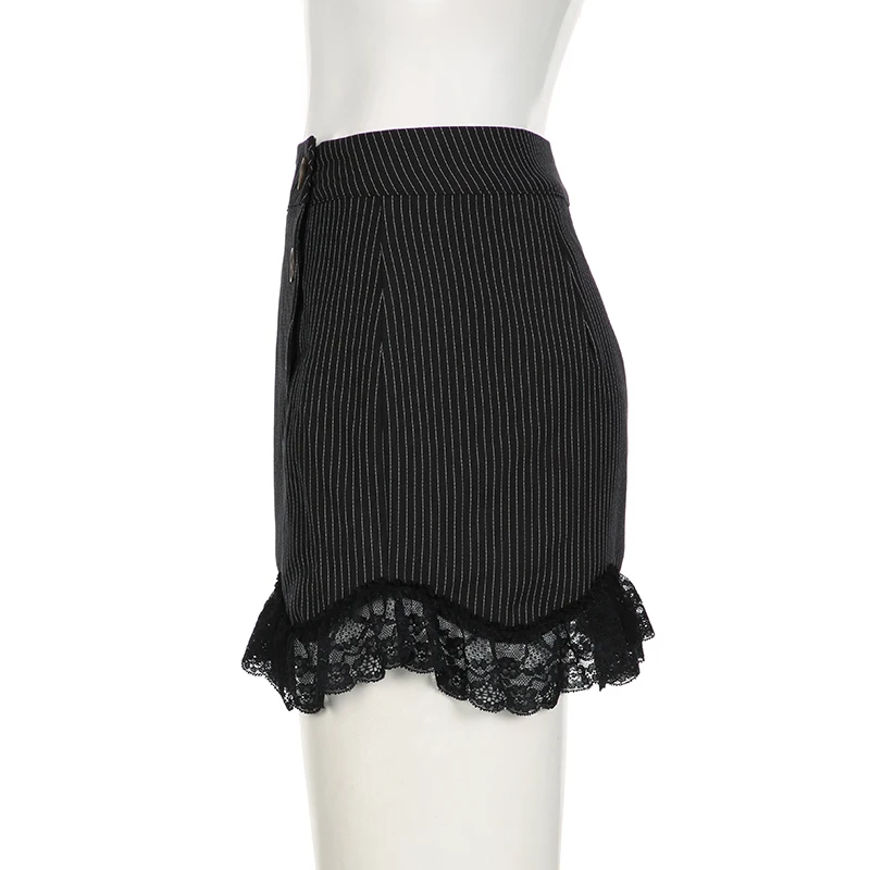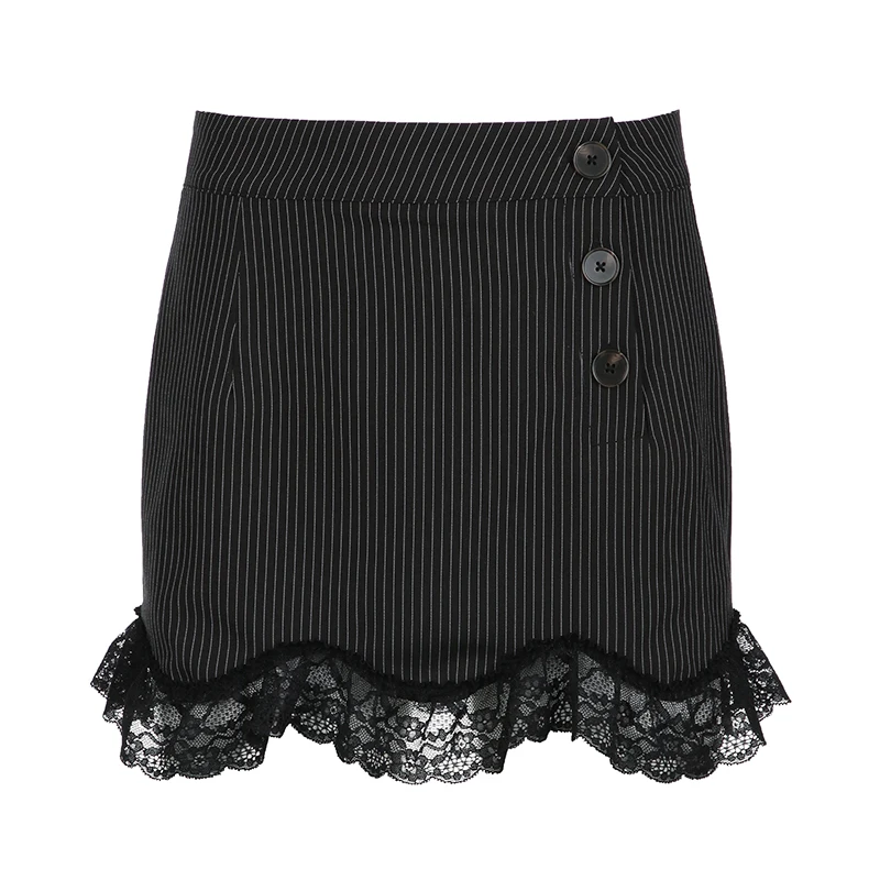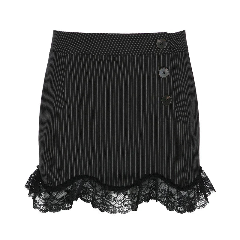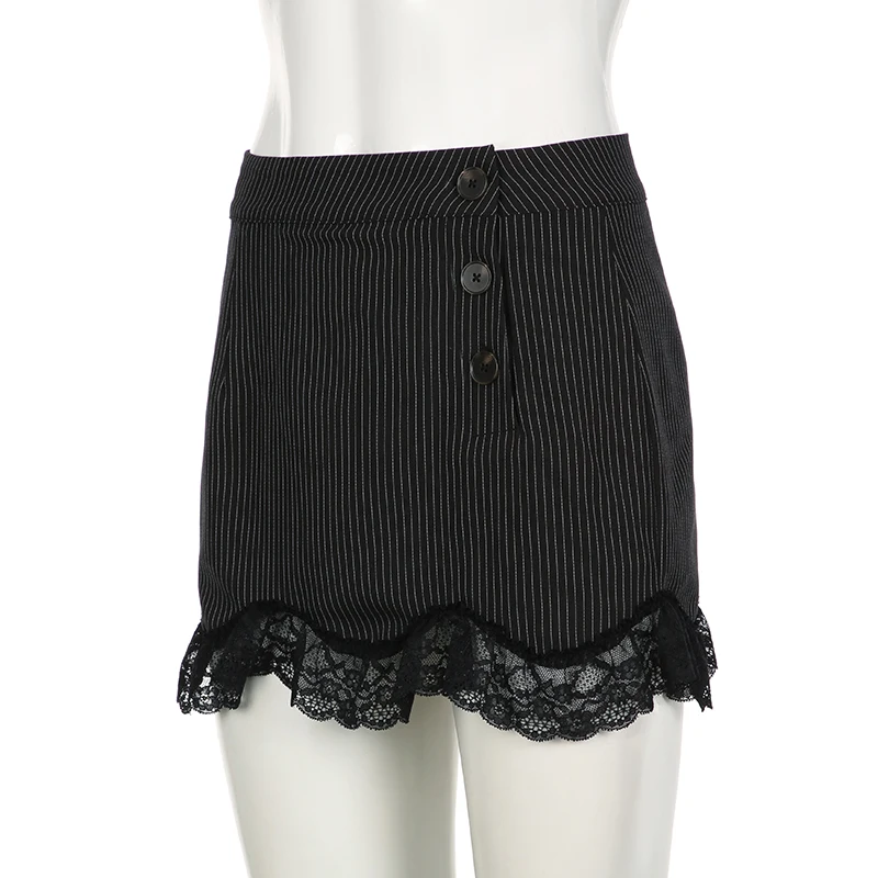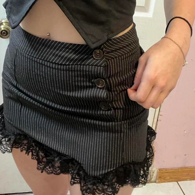 Fashion Chic Bodycon Stripe Mini Skirt Women Buttons Y2K Aesthetic Hot Lace Patchwork Summer Skirts Gothic Dark Cute