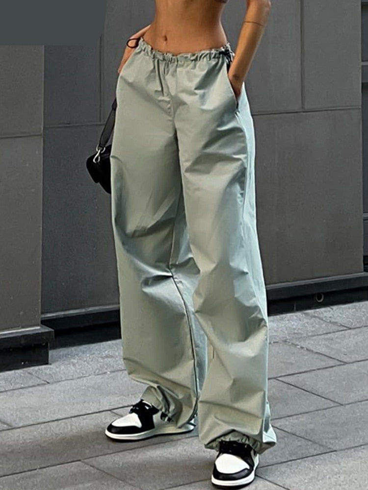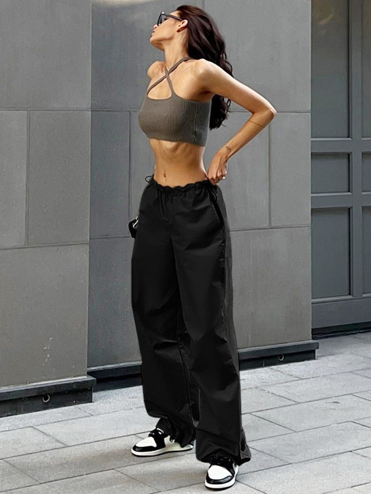 maoxiangshop Fashion High Street Cargo Pants Women Casual Sweatpants Solid Loose Trousers Drawstring Waist Wide Leg Pants Y2K Party