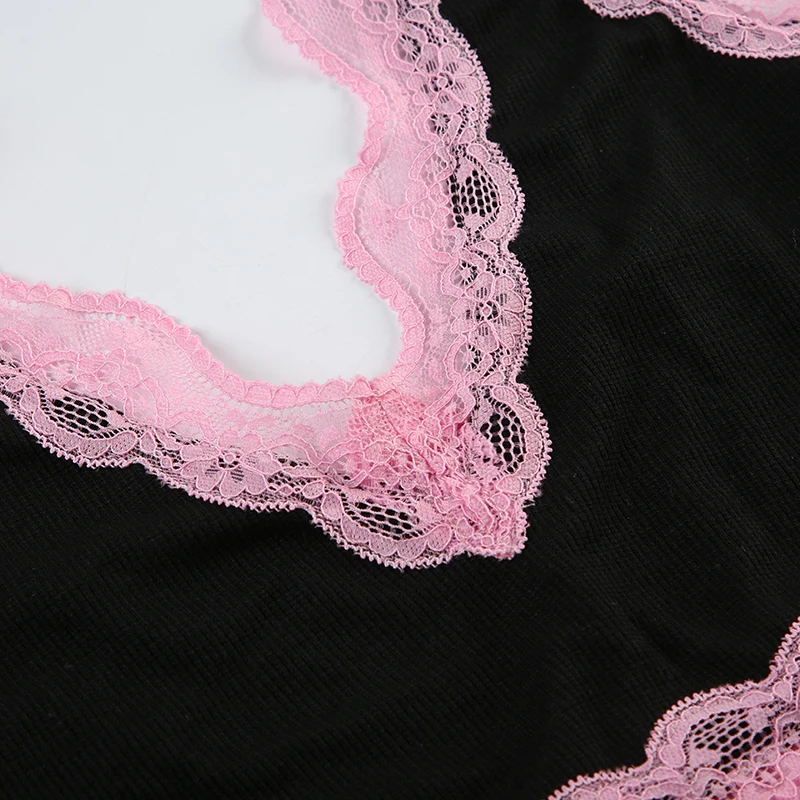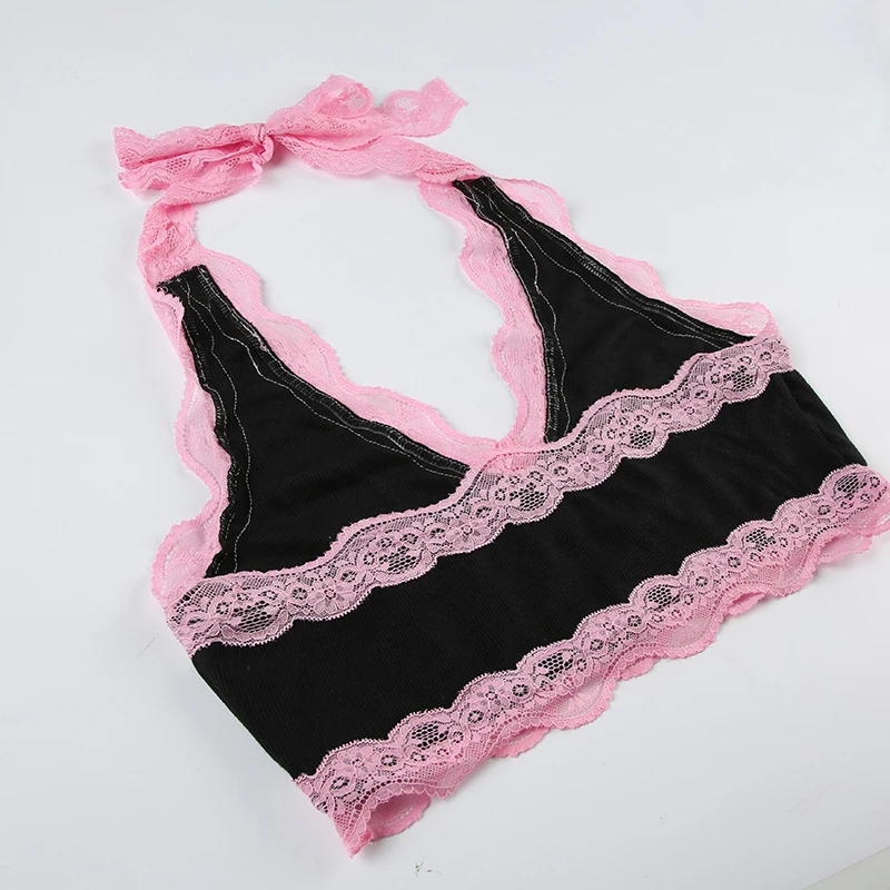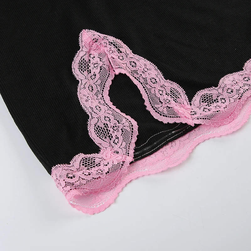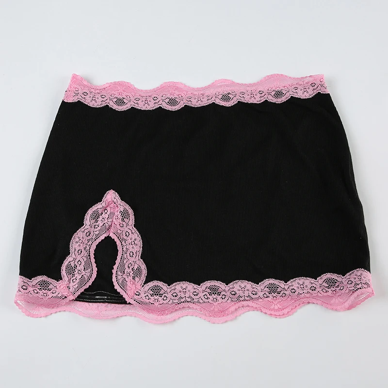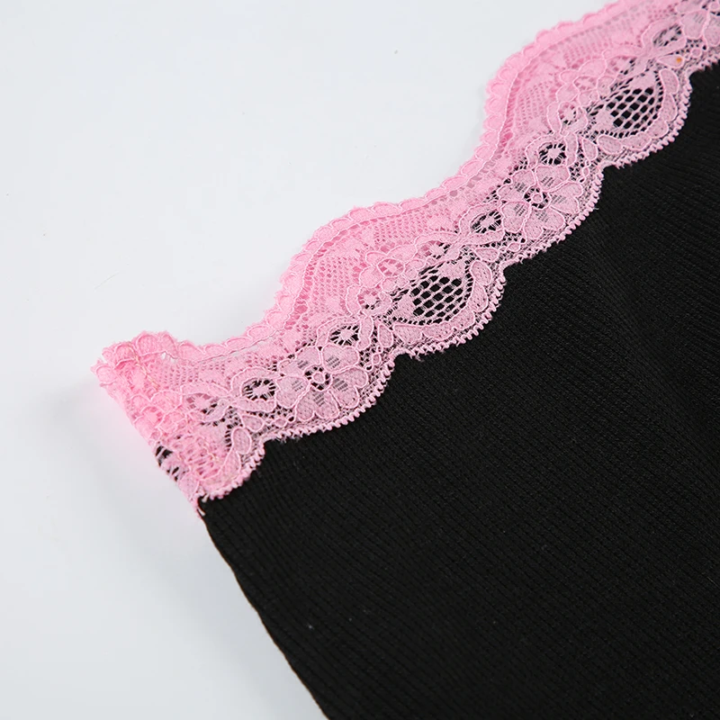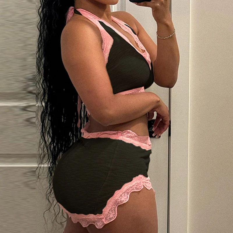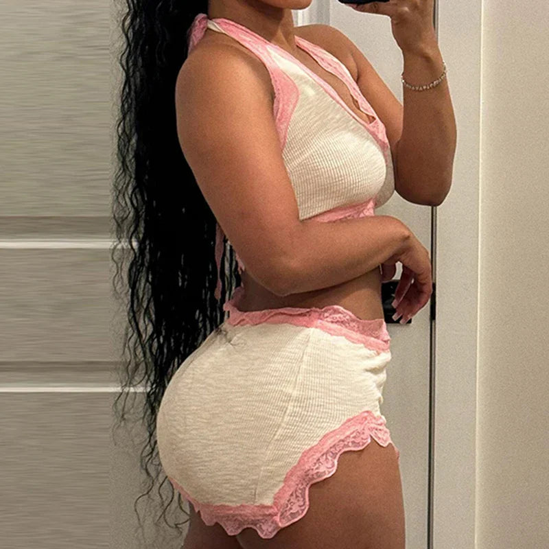 Fashion Sweet Sexy Summer Two Pieces Sets Women Club Party Bodycon Halter Top+Mini Skirts Lace Trim Coquette Clothes