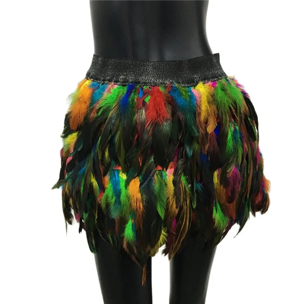 maoxiangshop Festival Rave Feather Skirt Carnival Halloween Evening Party Stage Performance Punk Gothic Y2K Women Mini Short Skirts Faldas