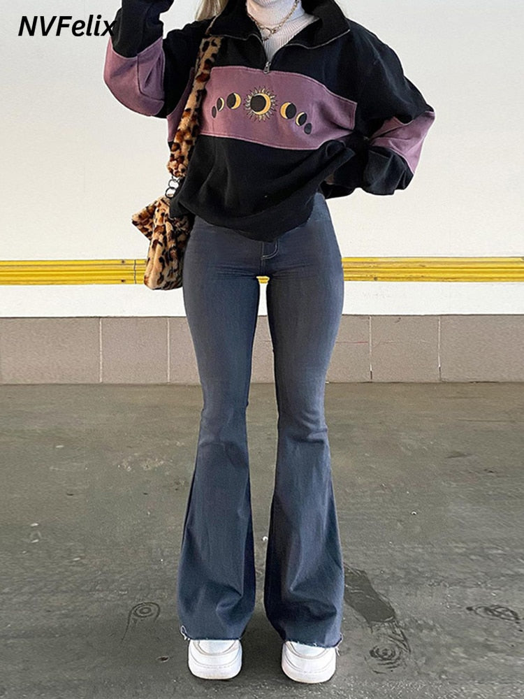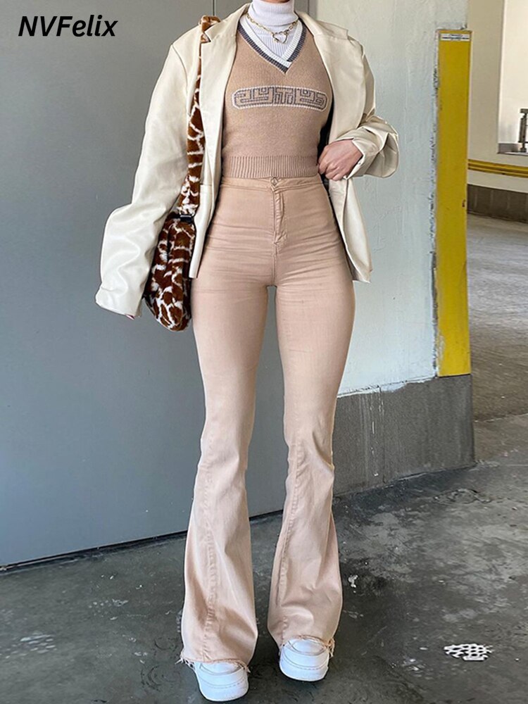 Flare Wide Leg Jeans Women Elastic High Waist Skinny Mom Denim Pants 2021 Fashion Oversize Casual Winter Trousers Streetwear New