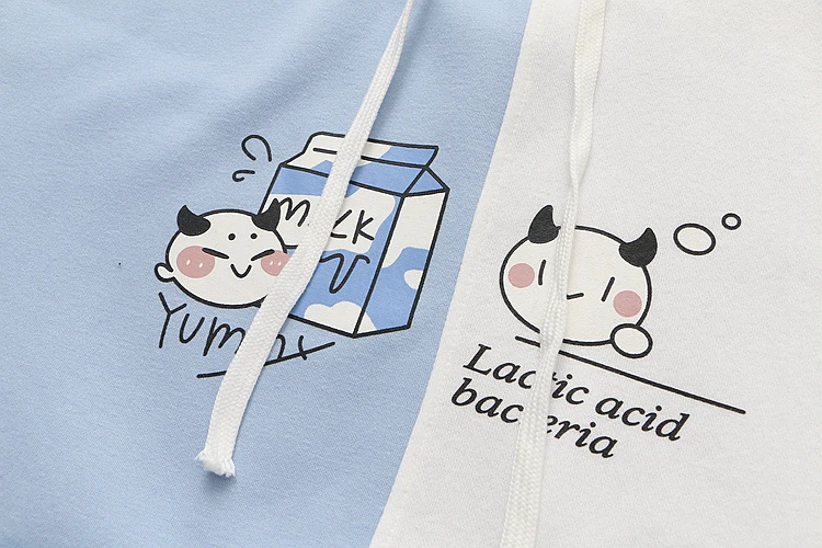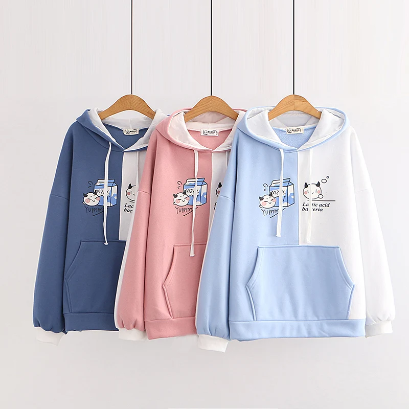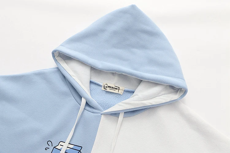 maoxiangshop fleece plus velvet women hoodies and sweatshirt cartoon cat print patchwork cute hooded pullover for sweet style Tracksuits
