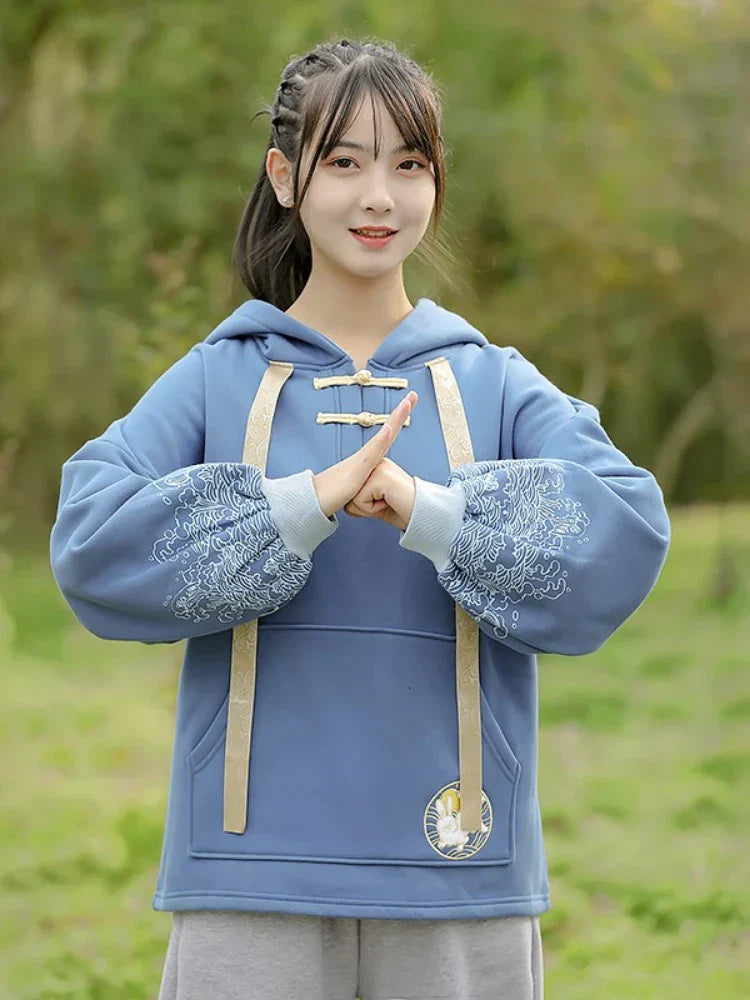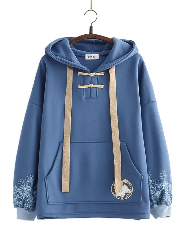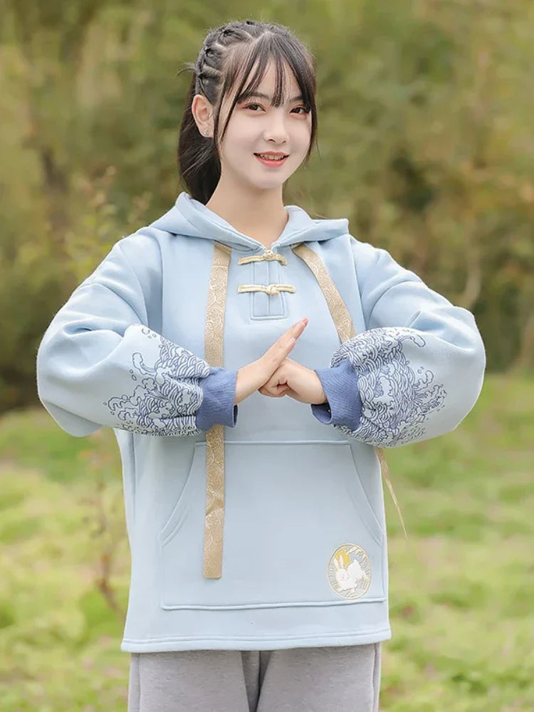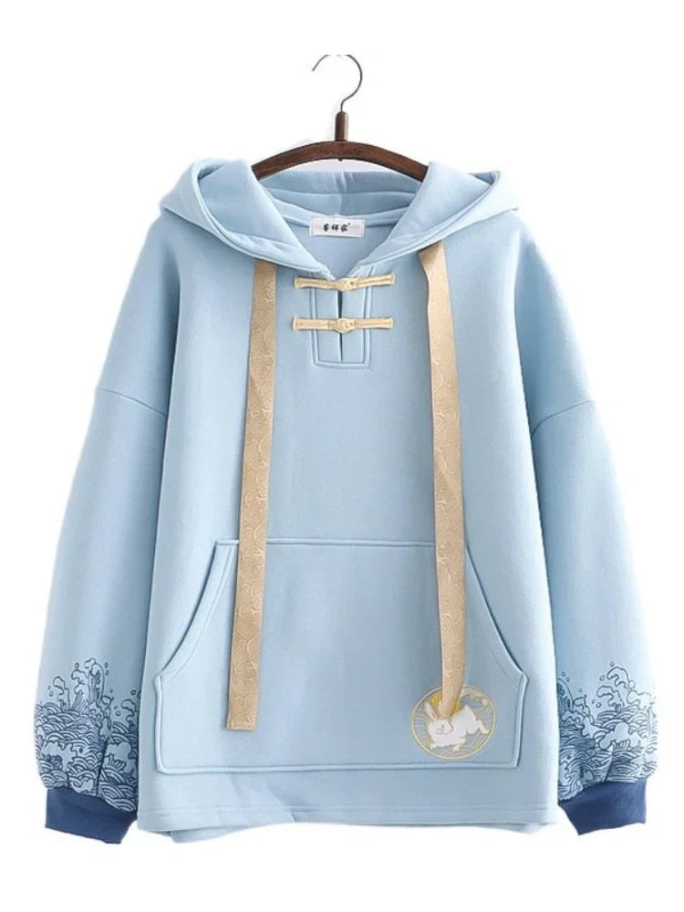 Fleece Women Hoodies Sweet Style Kawaii Rabbit Embroidery Hooded Sweatshirts Winter Harajuku Drawstring Hoody Sweatshirt